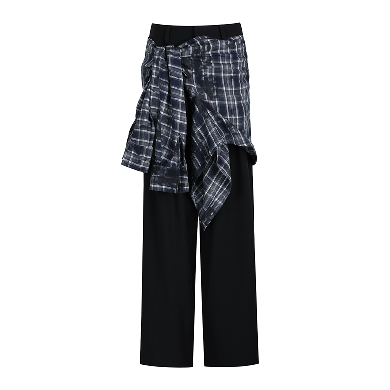 阔腿裤 THREE 假两件设计拼接西装 格纹衬衫 GOOOD殷三吉