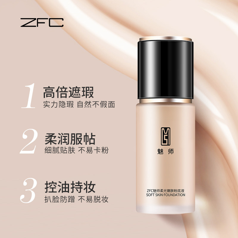 ZFC魅师柔光持妆粉底液裸妆遮瑕干皮学生平价丝滑柔润轻薄服帖