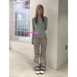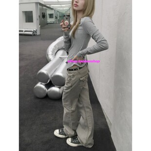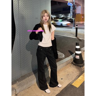 eihey诶嘿喇叭牛仔裤 显瘦中腰做旧设计感水洗小个子复古高街 长裤
