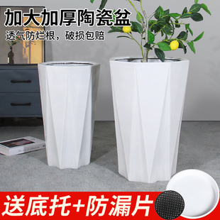 陶瓷大花盆白色简约大号家用客厅落地兰花虎皮兰天堂鸟绿植种树盆