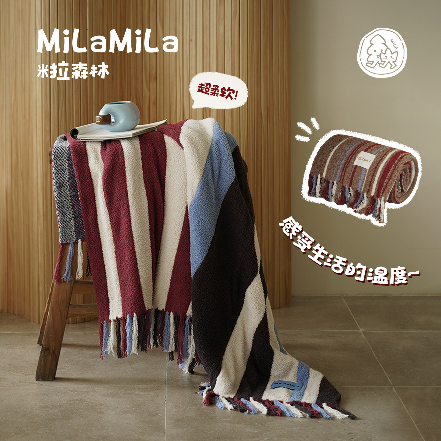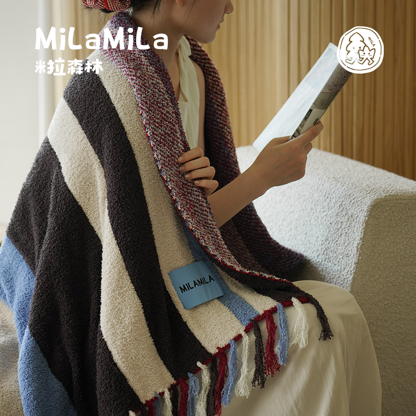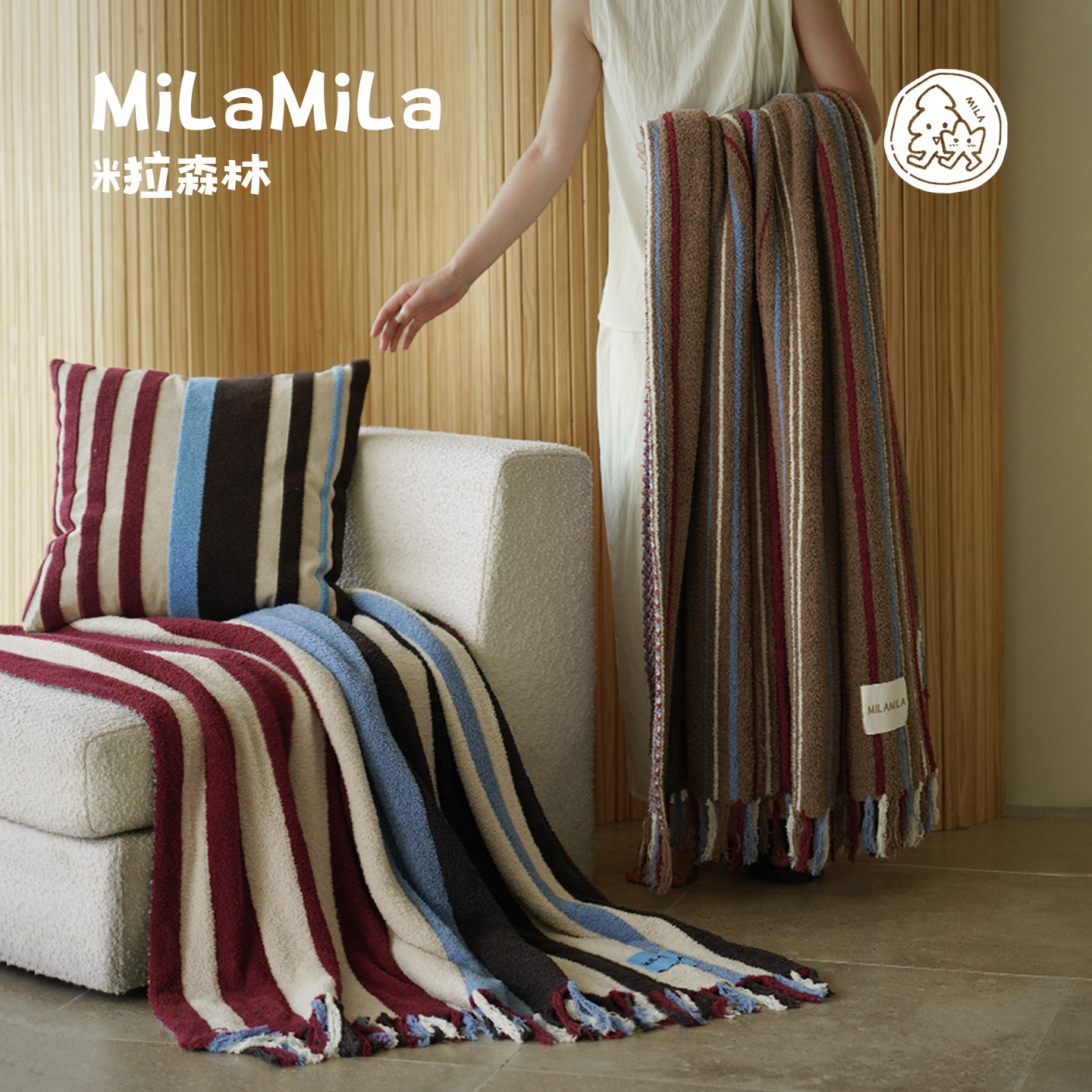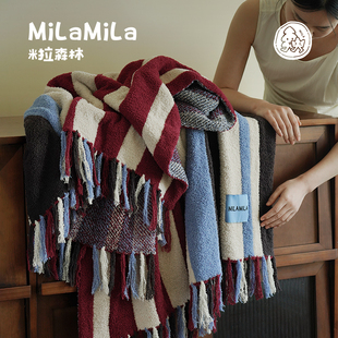 通用 办公室午睡盖毯空调披毯沙发毯毛巾被四季 MILA 撞色条纹毛毯