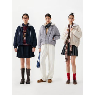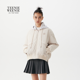 舒适撞色拼接连帽棉衣外套 轻薄短款 TeenieWeenie小熊女装 棉服冬季