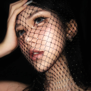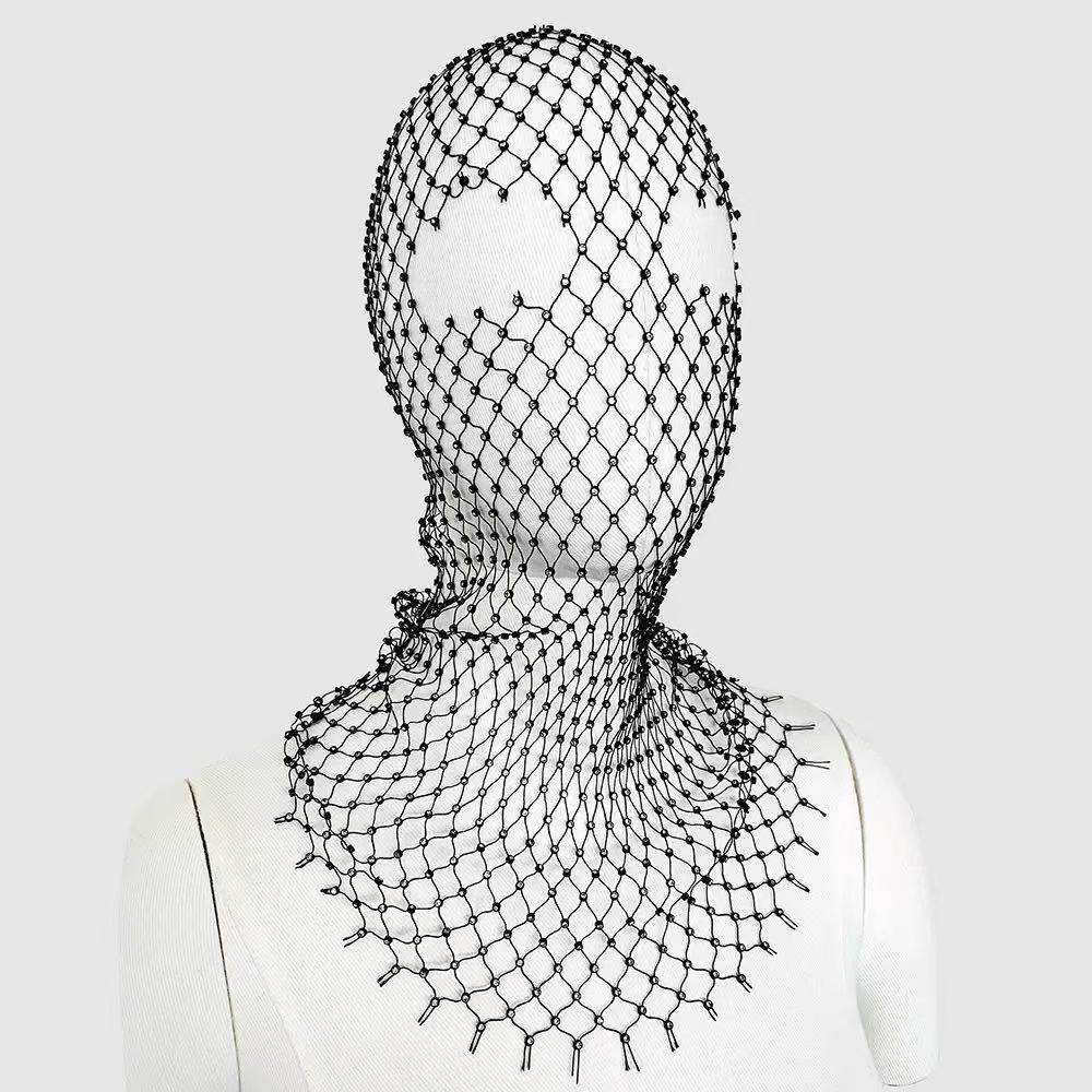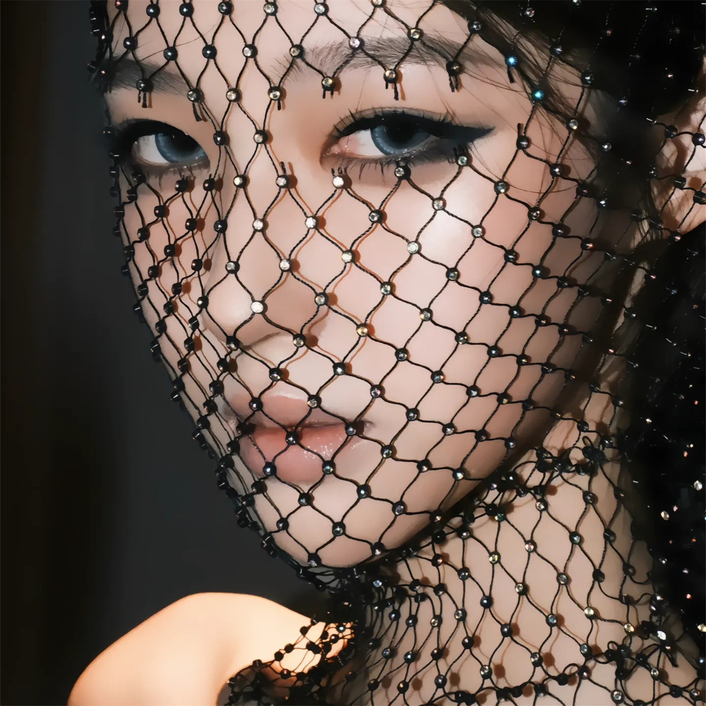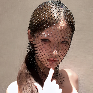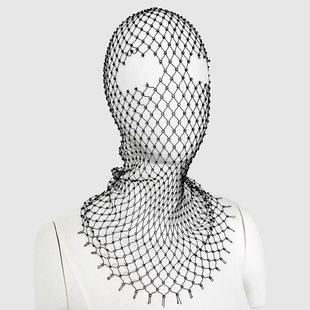 冷面女神 欧美配饰满钻面罩弹力黑色网格头罩头巾闪钻音乐节渔网