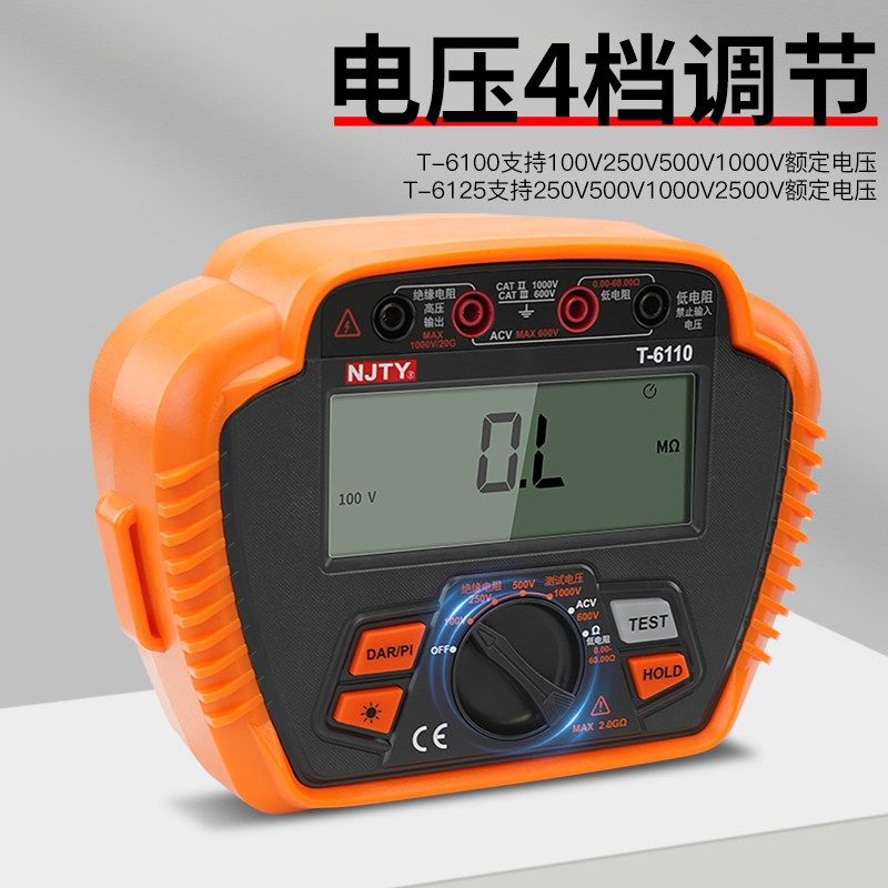 天宇数字兆欧表绝缘电阻测试仪电工摇表500V1000智能绝缘表T6110