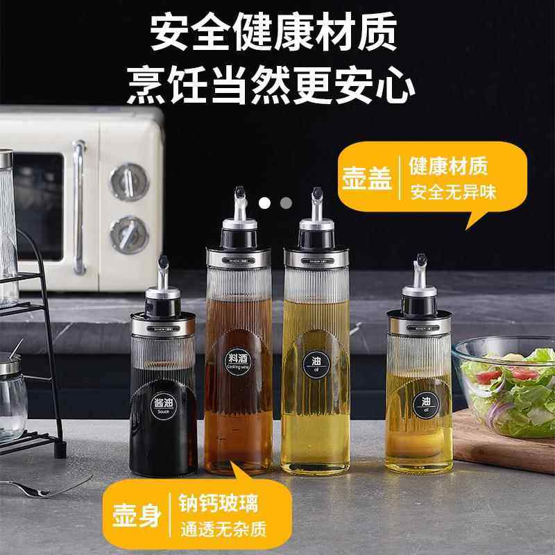 不漏油 油瓶防漏玻璃油壶罐自动开合大容量家用酱油醋调料瓶套装