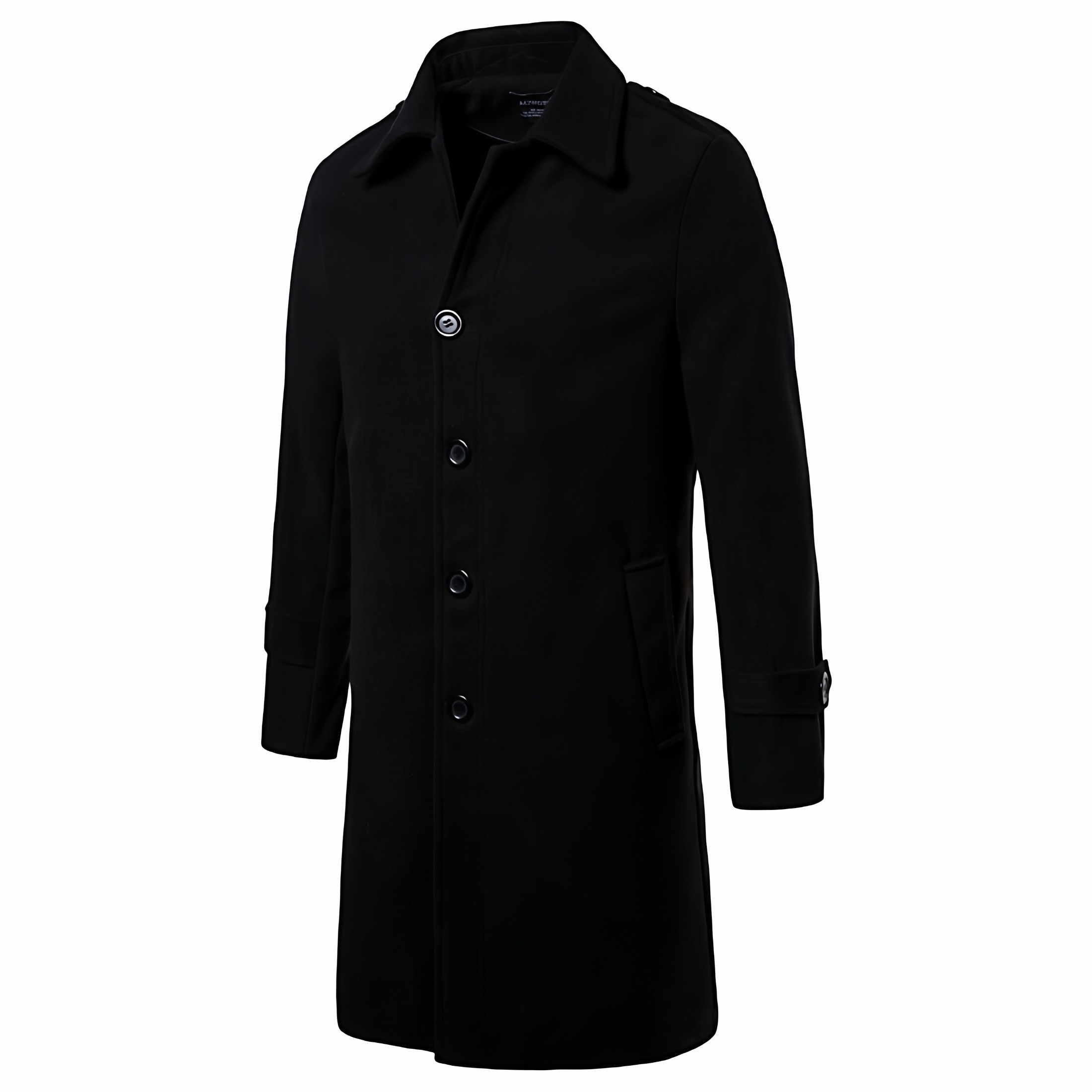 韩版 长款 呢子加厚风衣外套 2025春秋季 V37黑色高级感毛呢大衣男款