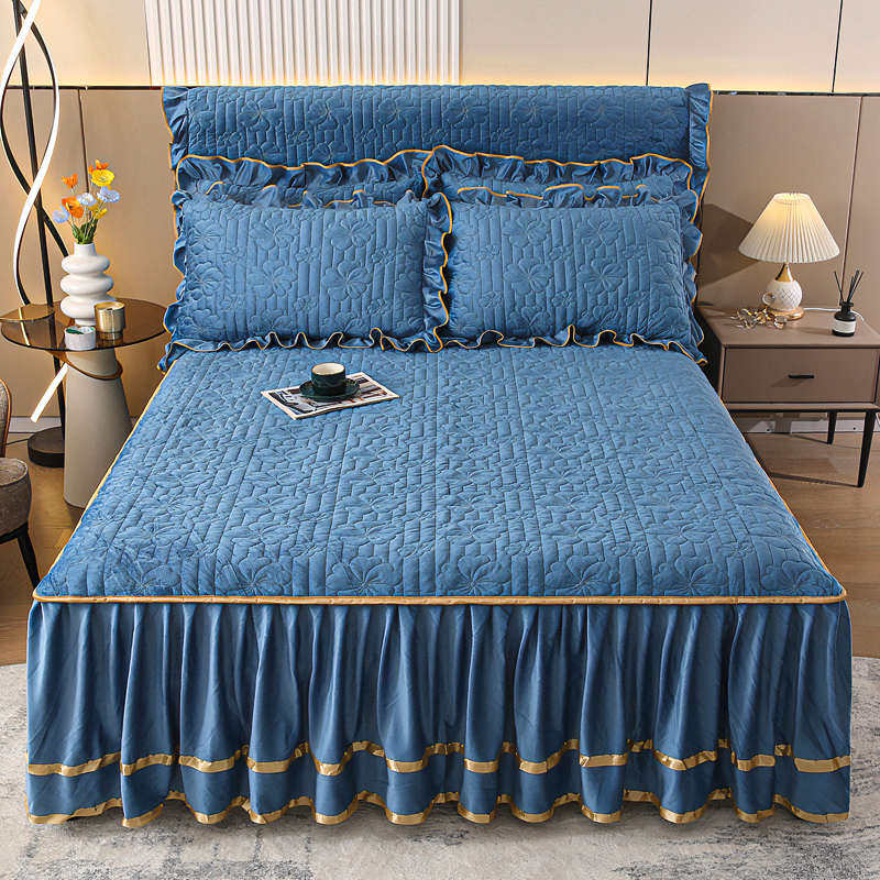 全棉床裙夹棉床笠单件纯棉床盖防尘床单床垫防滑三件套四季 通用