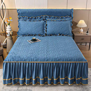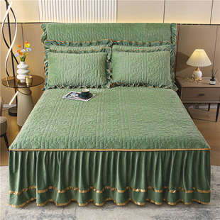 冬季 纯色牛奶绒夹棉床裙单件珊瑚绒法兰绒加厚保暖床罩三件套防滑