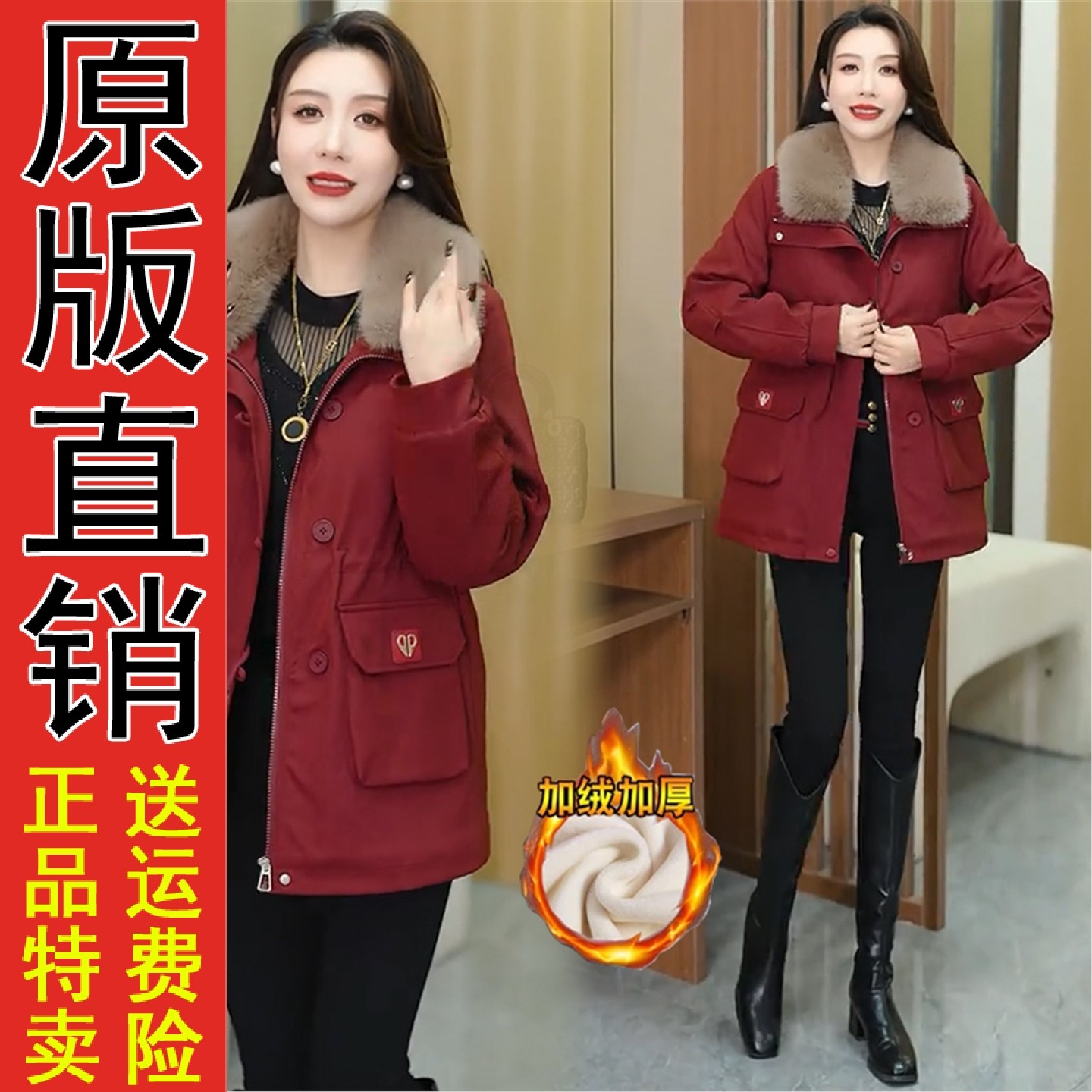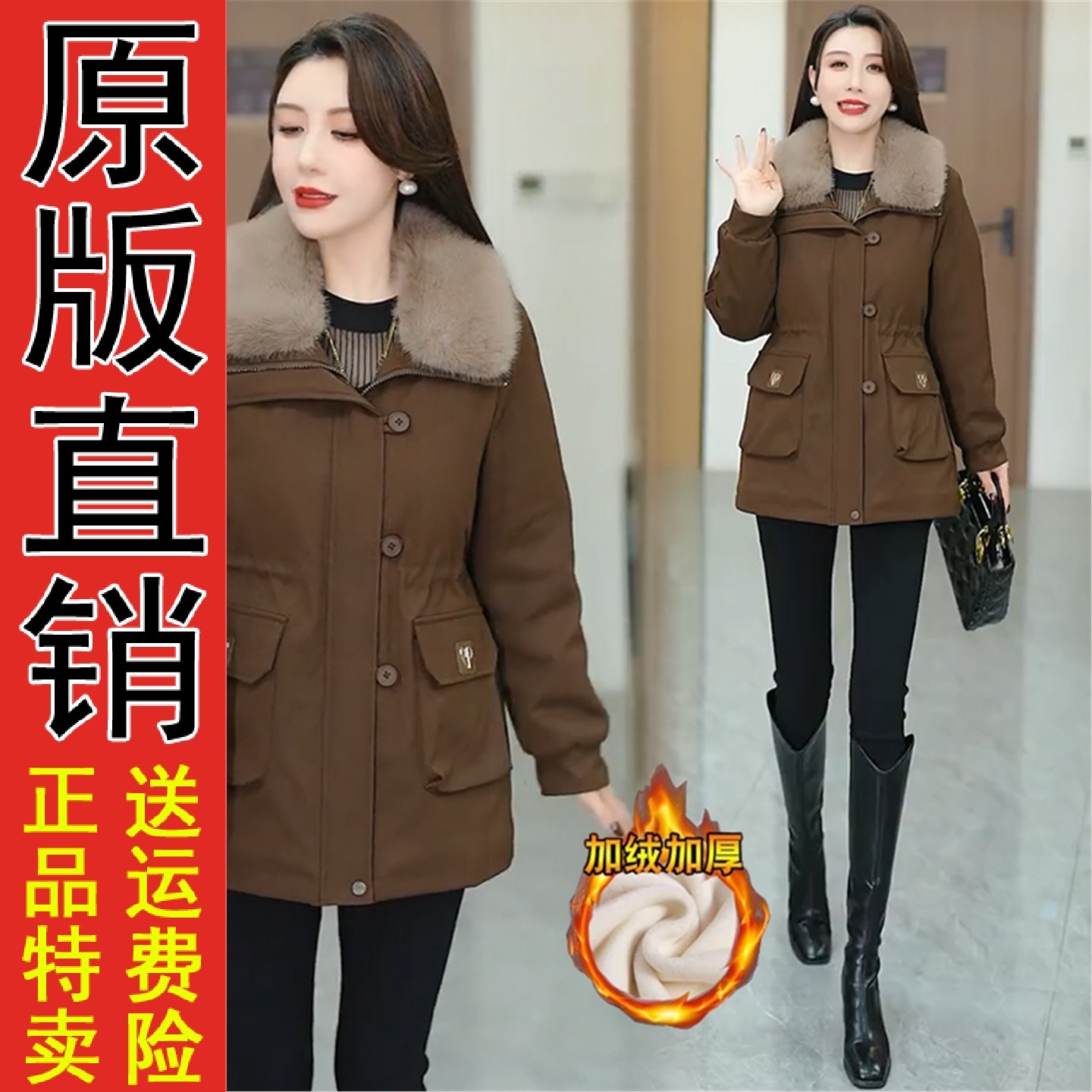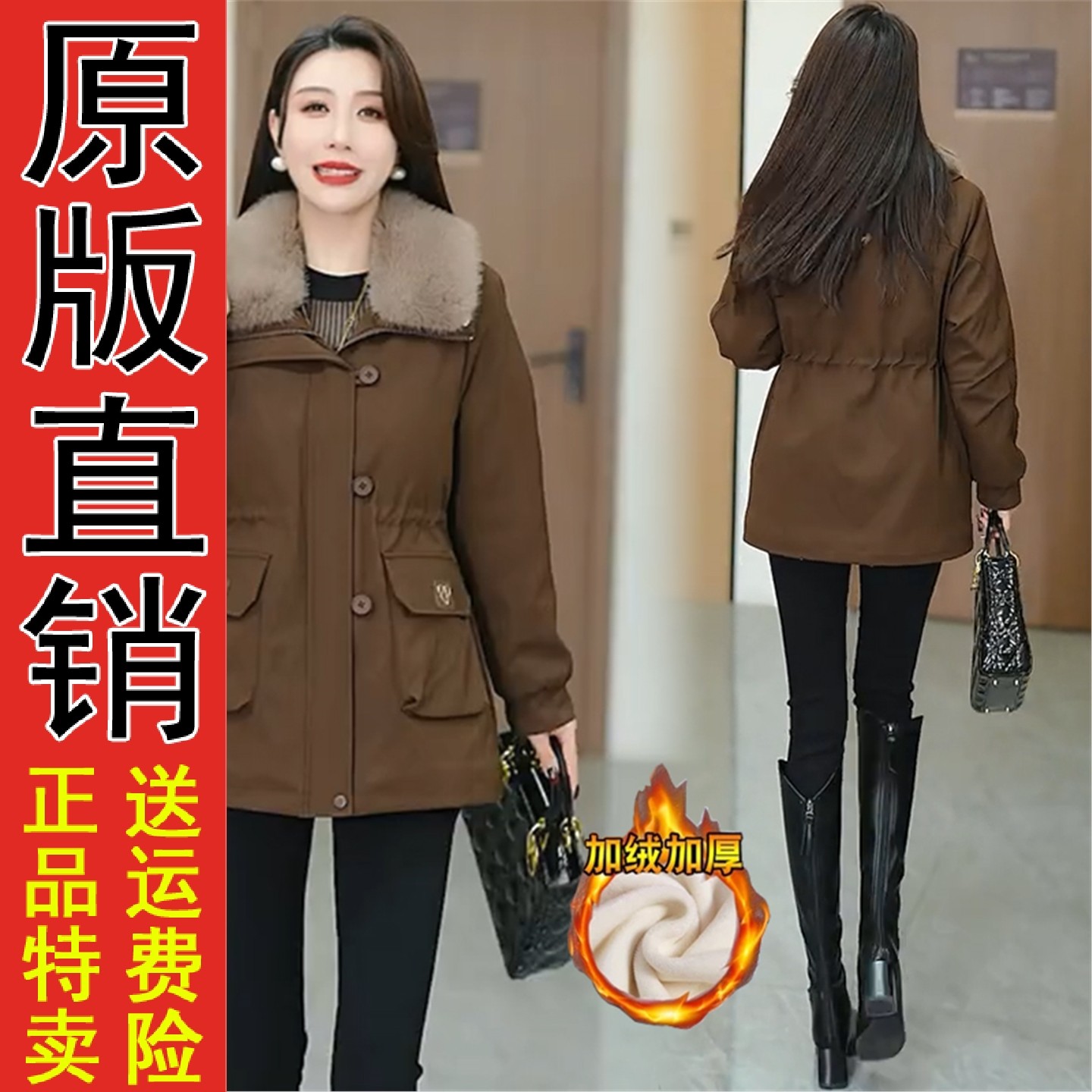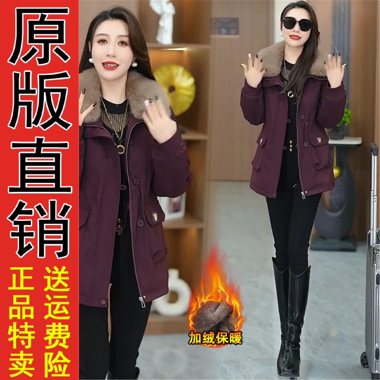 冬加厚工装 毛领羽绒服中长款 骆驼女装 派克服羽绒外套 小红书同款
