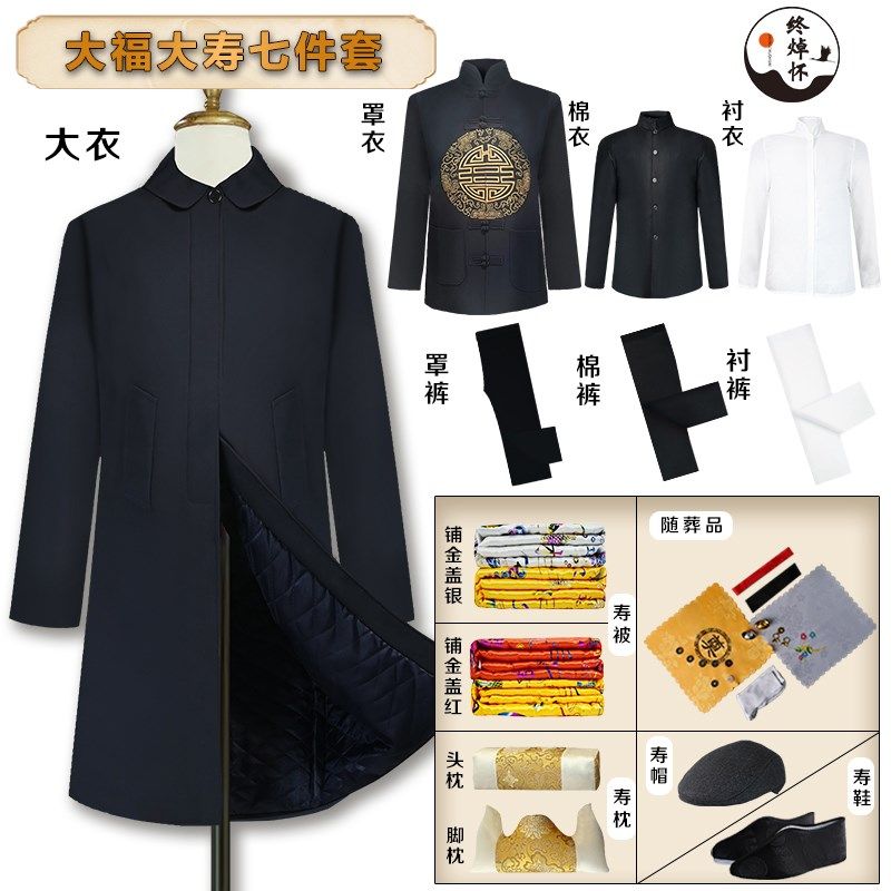 速发寿品全套男中山装 送老衣 高人纯棉殡葬用服去世老档寿衣式