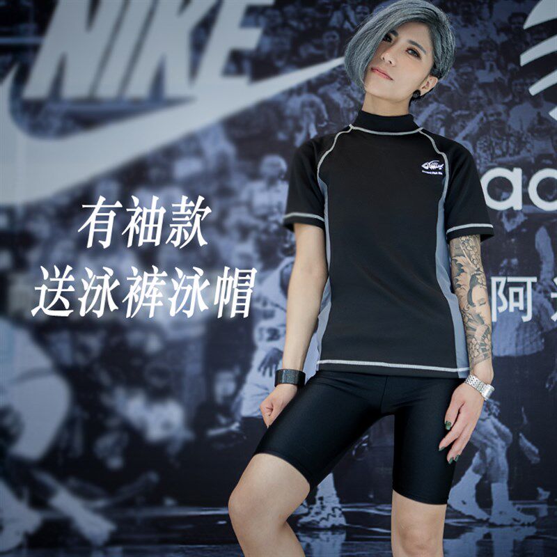 les 送裤 tt长款 拉链泳衣 帽 束胸泳衣加强绷带温泉泳衣 古鱼王帅T