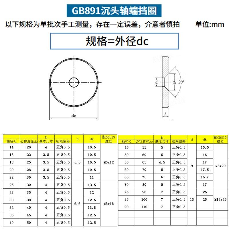 GB891沉头螺钉紧固轴端挡圈B型加厚加大平垫片华司 6折