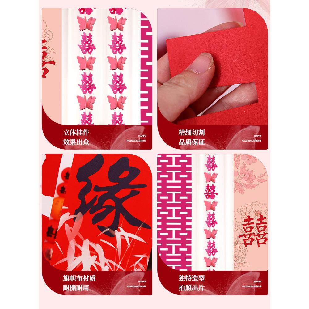长条喜字结婚专用农村小院子门口装 饰背景墙婚礼拉花婚房布置套装
