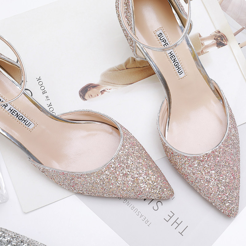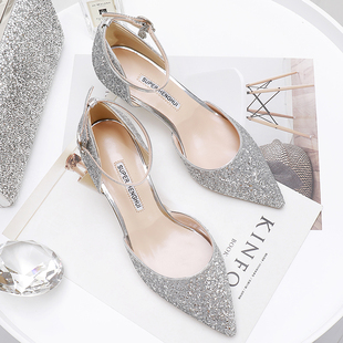 单鞋 欧美2025新款 性感夜店防水台浅口女鞋 细跟尖头超高跟鞋 春季