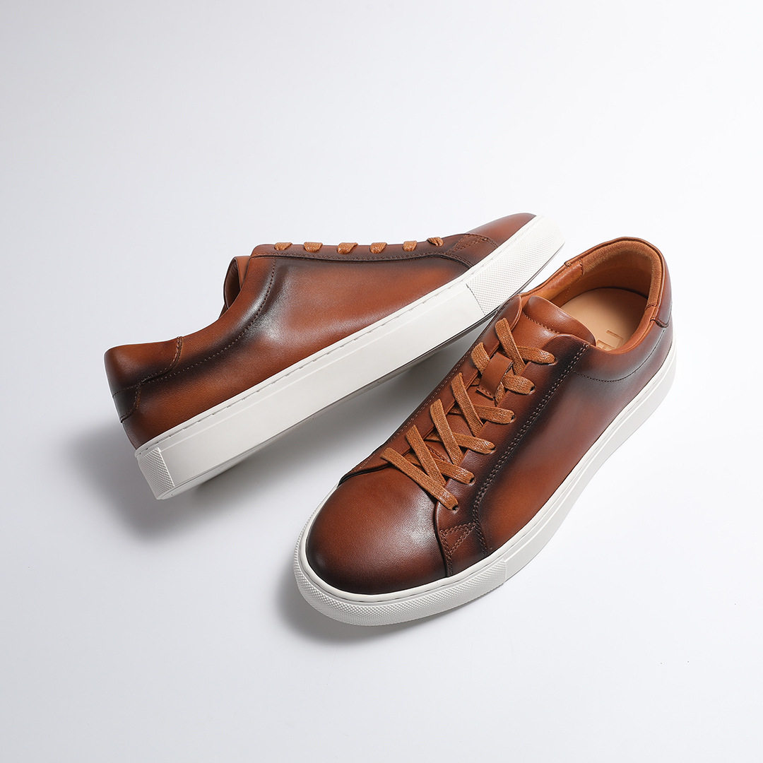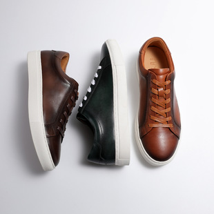 手工系带软底英伦复古风德训小白鞋 男式 牛皮擦色板鞋 2026春新潮款