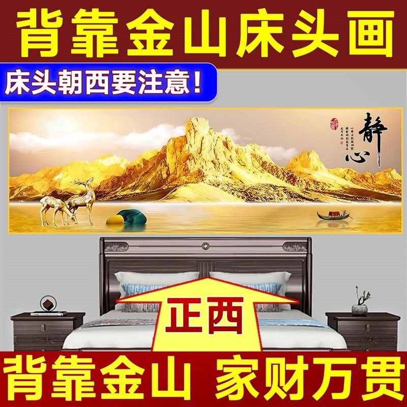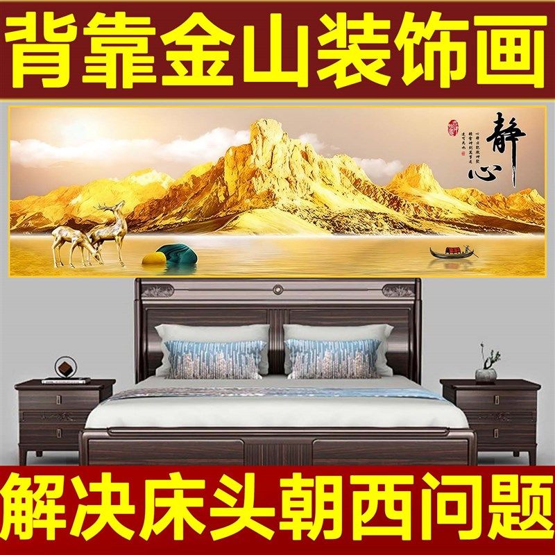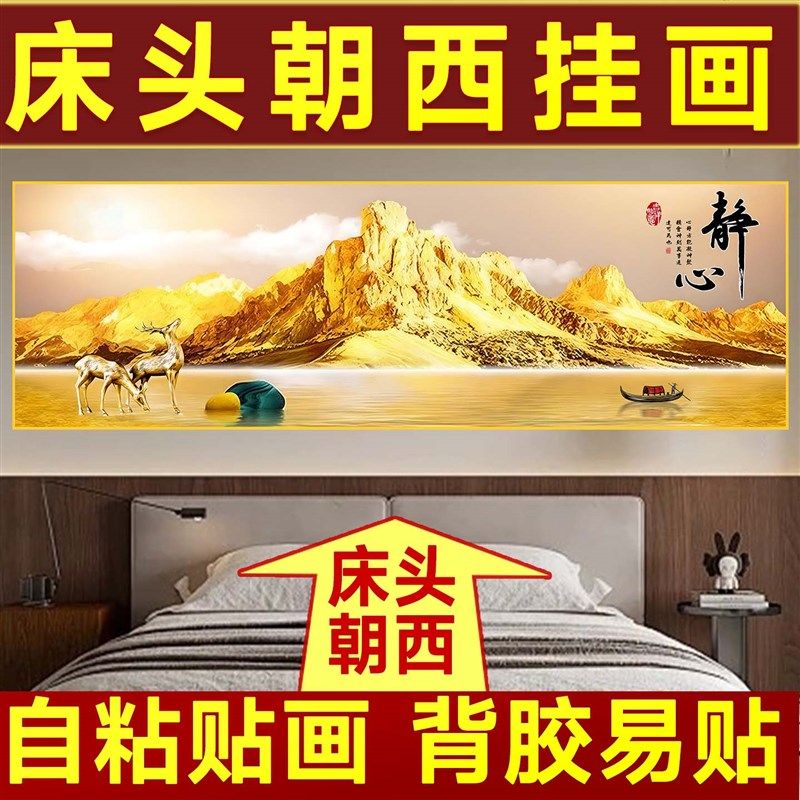 背靠金山卧室床头装 饰画朝西挂画床头向西挂什么自粘墙贴房间背景