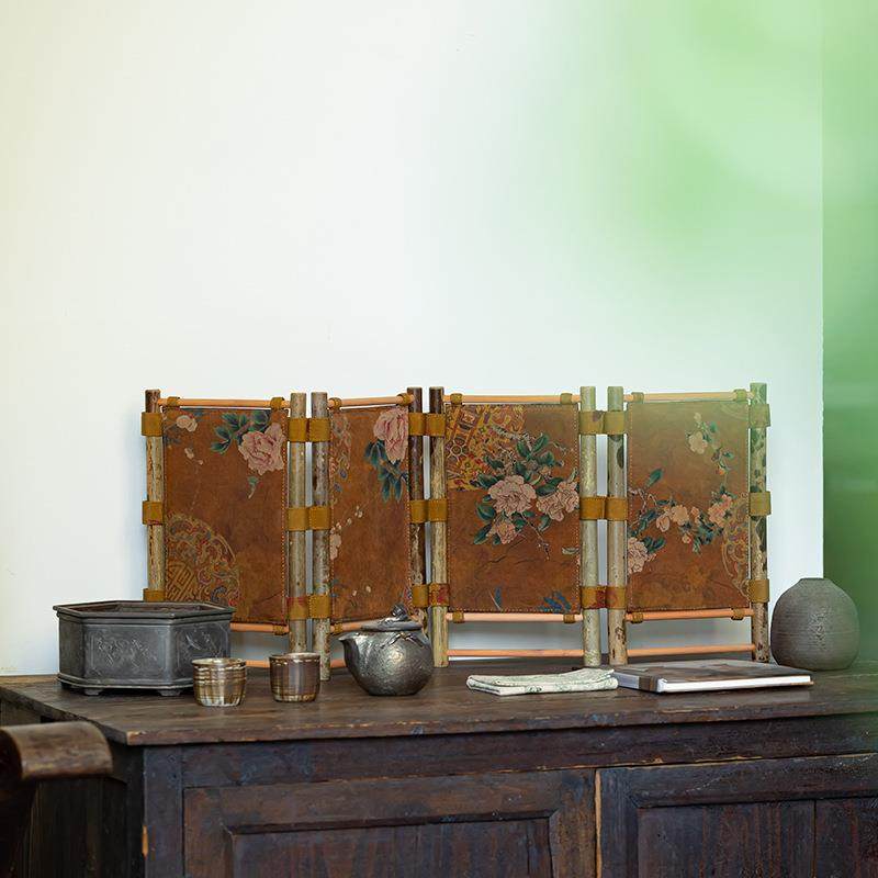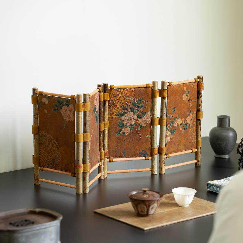 云纱制屏风干隔泡台茶桌断LRU茶道配件桌面屏风茶席茶艺桌布竹茶
