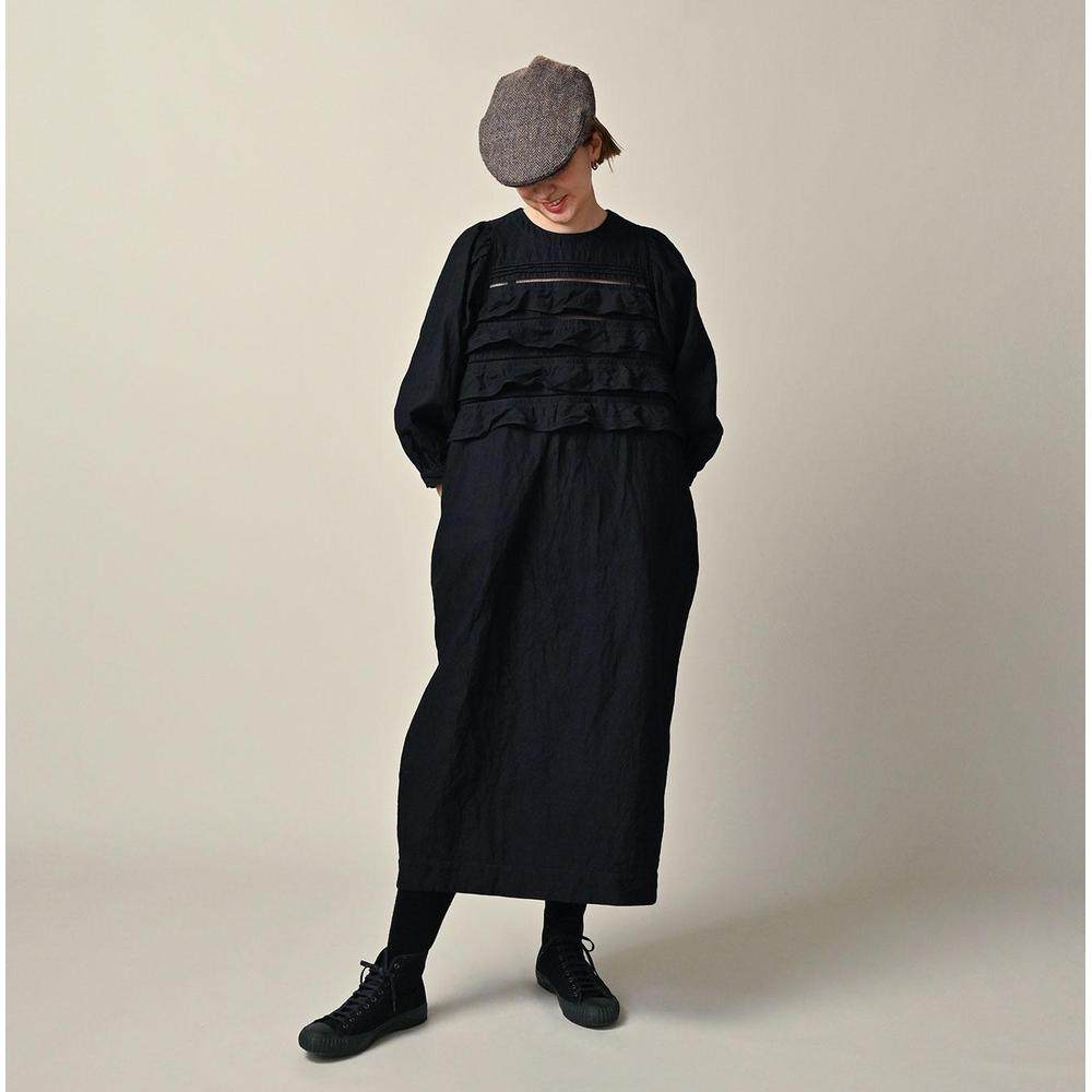 靛蓝色 1h可退 背部缎面层叠荷叶边连衣裙 薄款 日本直邮45R