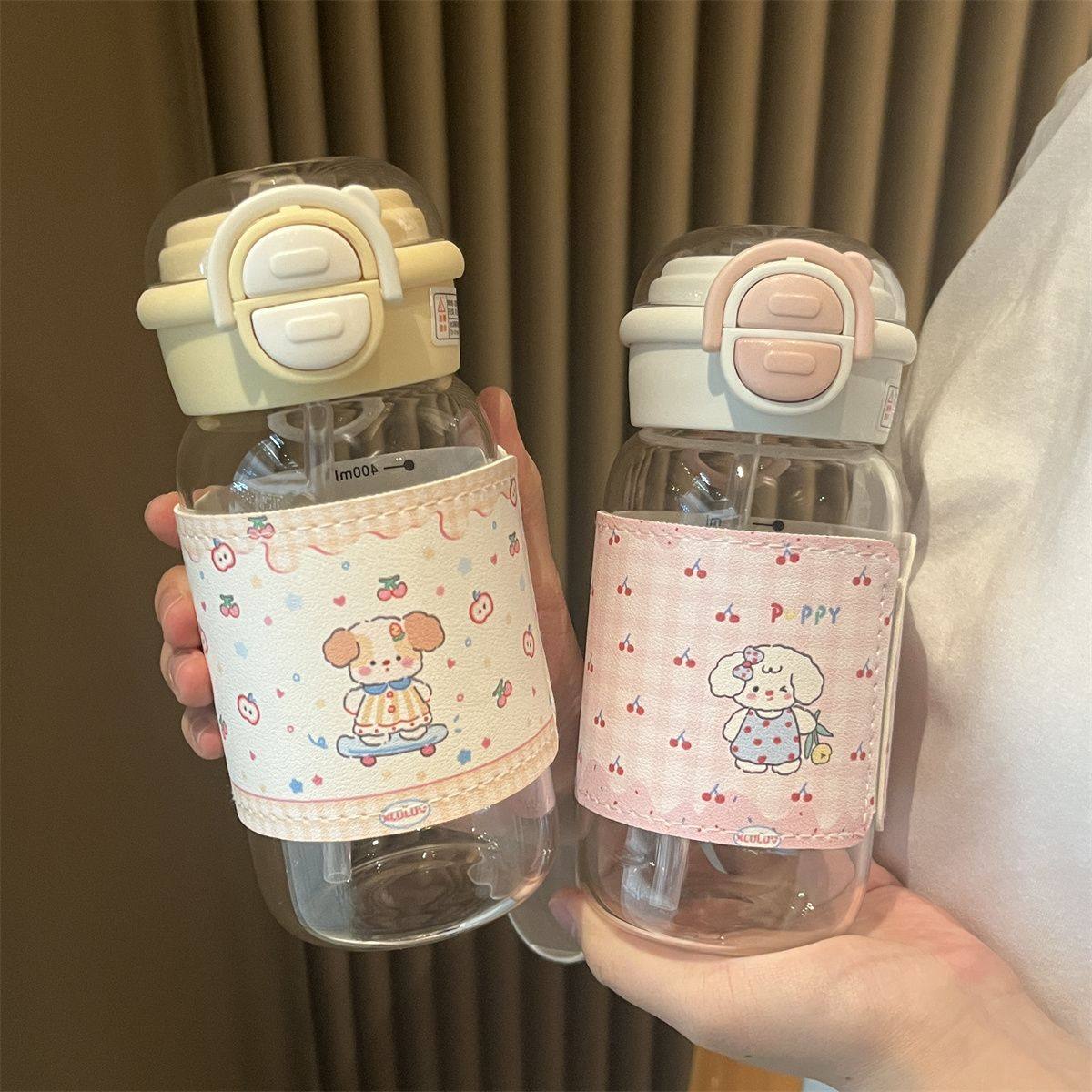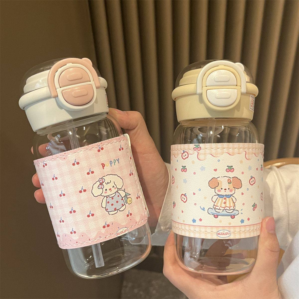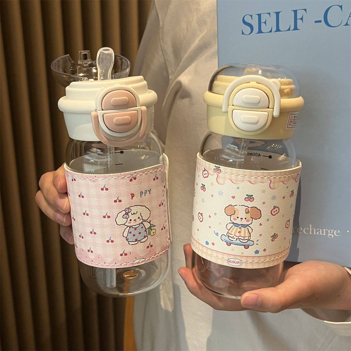 玻璃杯女高颜值办公室吸管杯耐高温隔热防烫学生上学便携双饮杯子