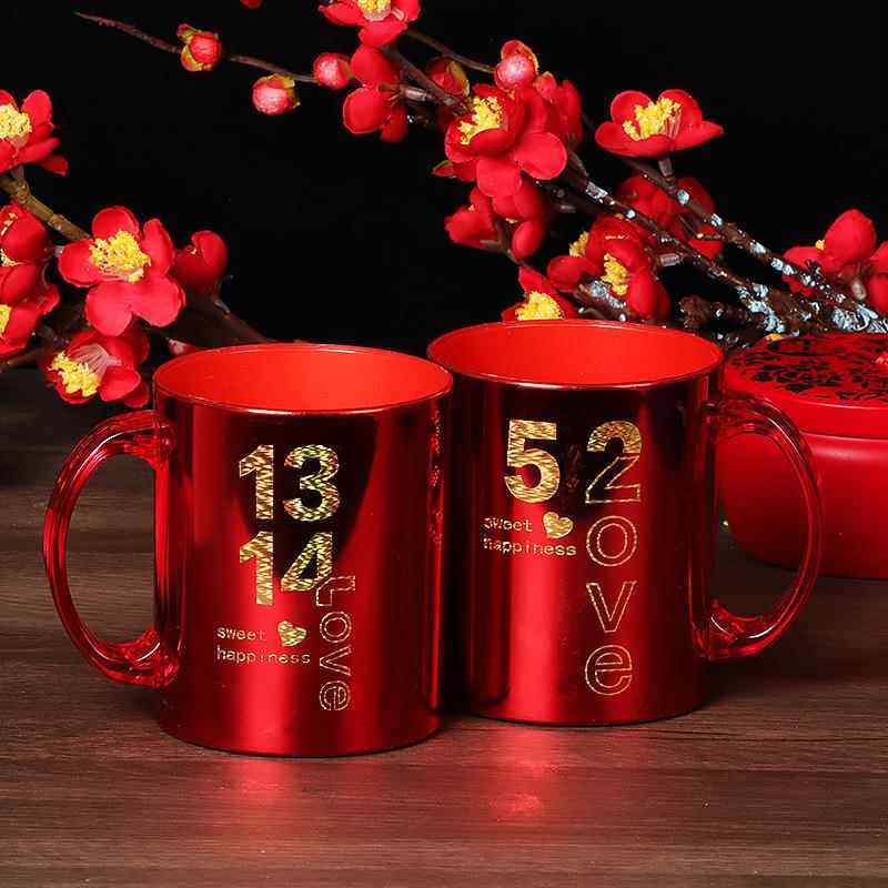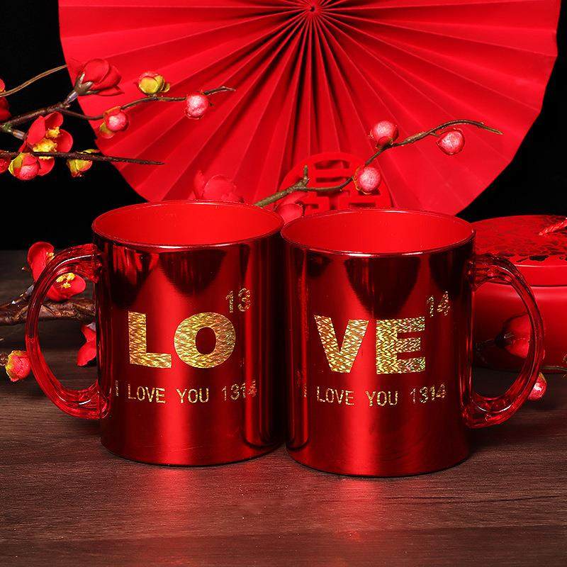 结婚漱口杯一对红色婚庆情侣塑料喜庆牙刷杯陪嫁婚庆新婚牙杯套装