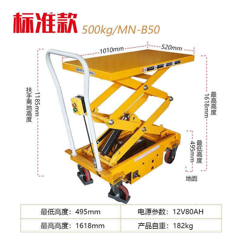 500kg充电式 B50电动平台车半自动液压电动升降车 升降平台车MN