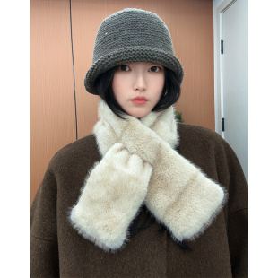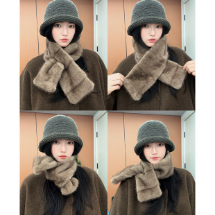 高级感龙猫棕色仿水貂毛绒绒交叉围脖千金贵气感皮草保暖护颈围巾