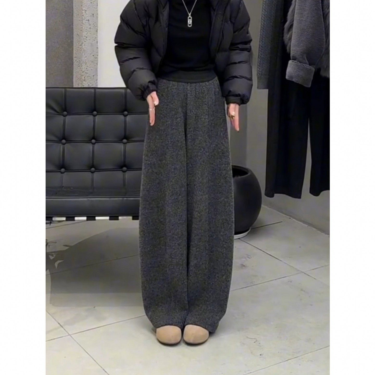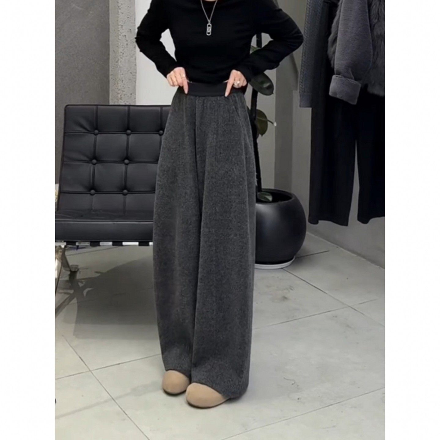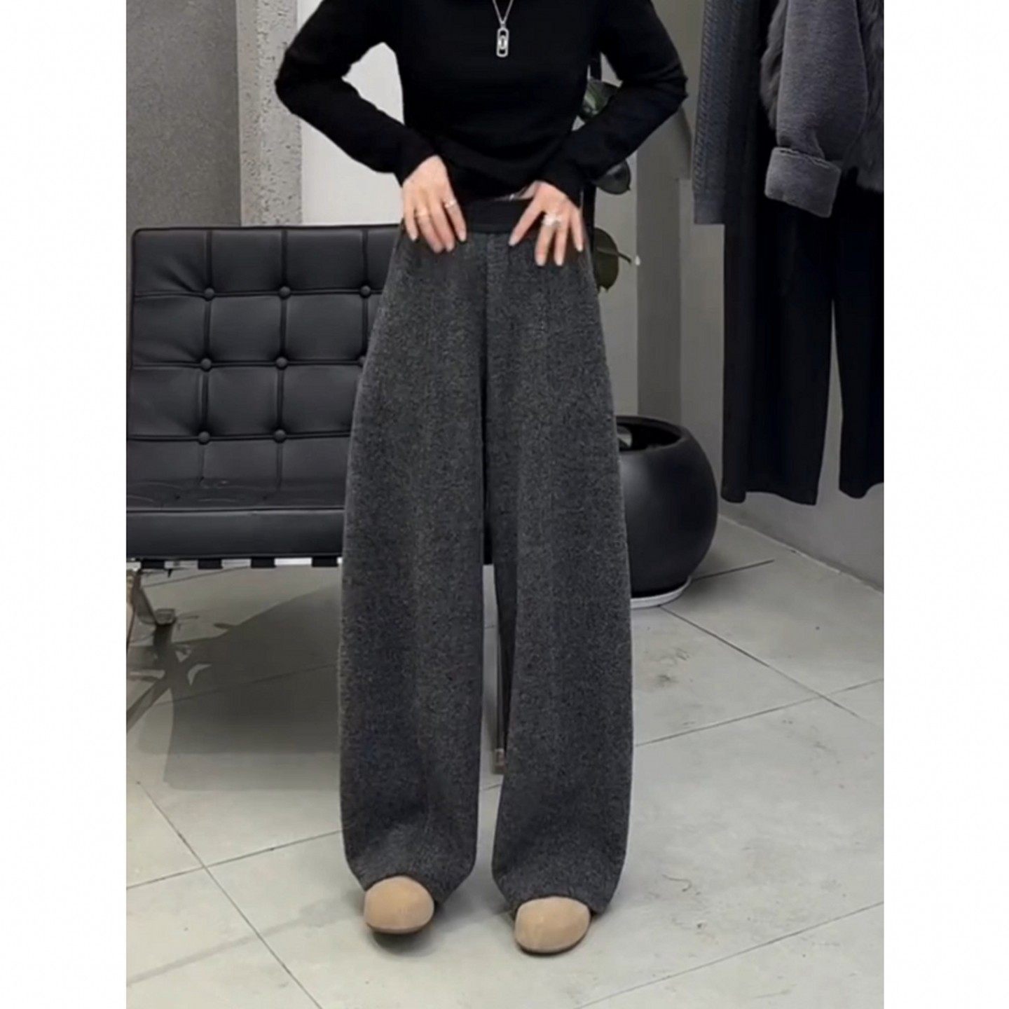 宽松慵懒风垂感直筒休闲弯刀裤 欧货加绒毛呢阔腿裤 女秋冬2025新款