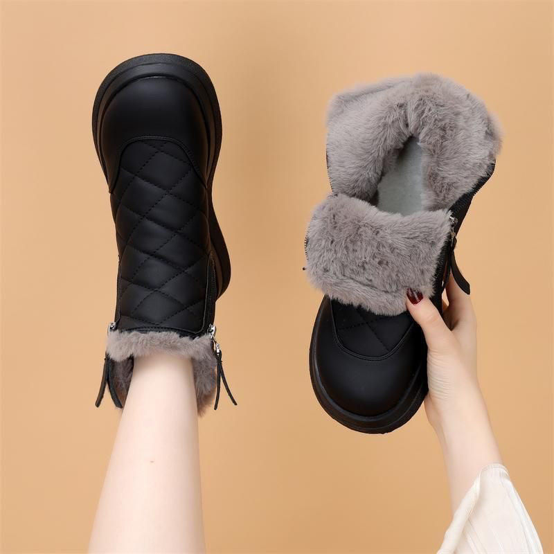 短靴子 加绒加厚防滑棉鞋 真皮保暖雪地靴女2025年新款 冬季