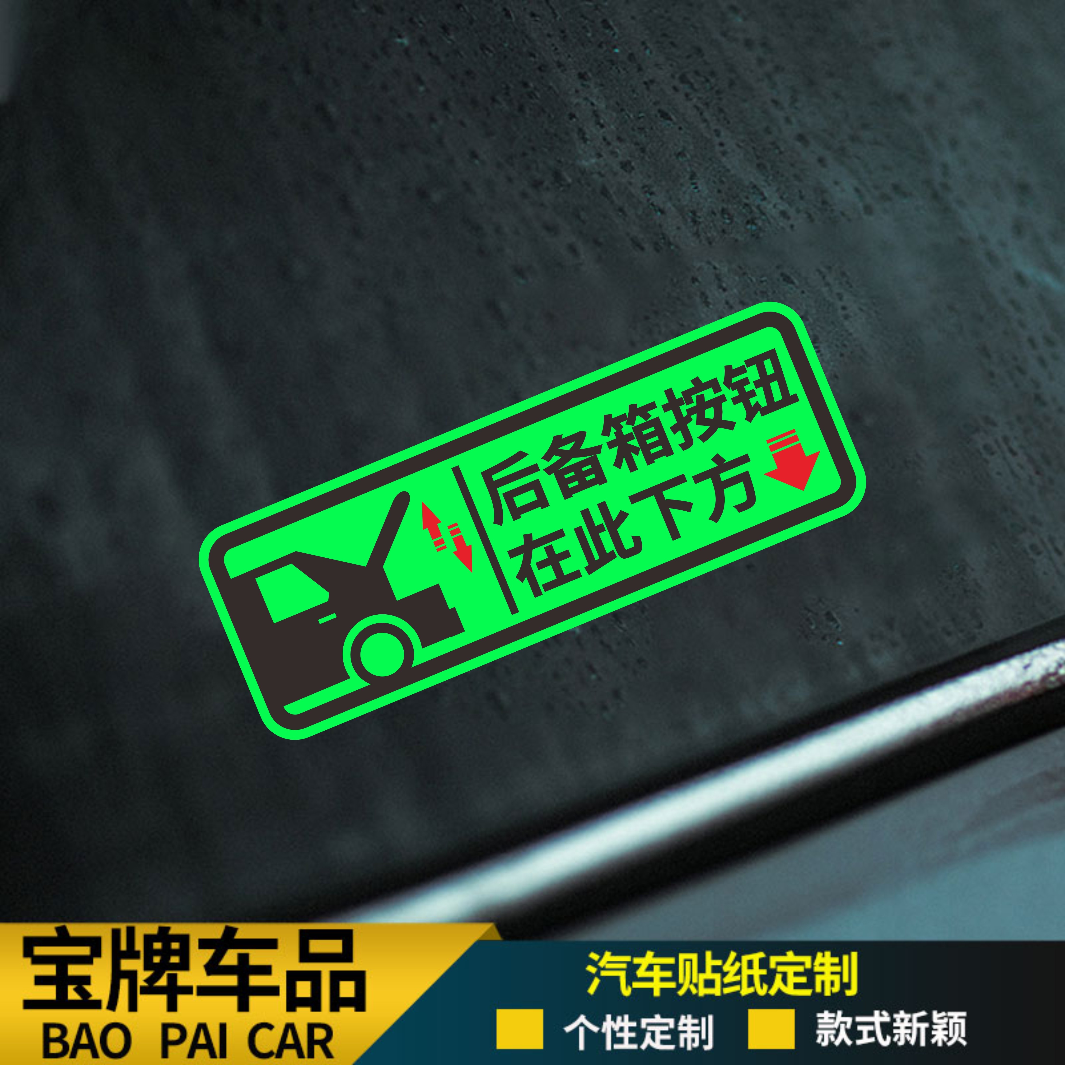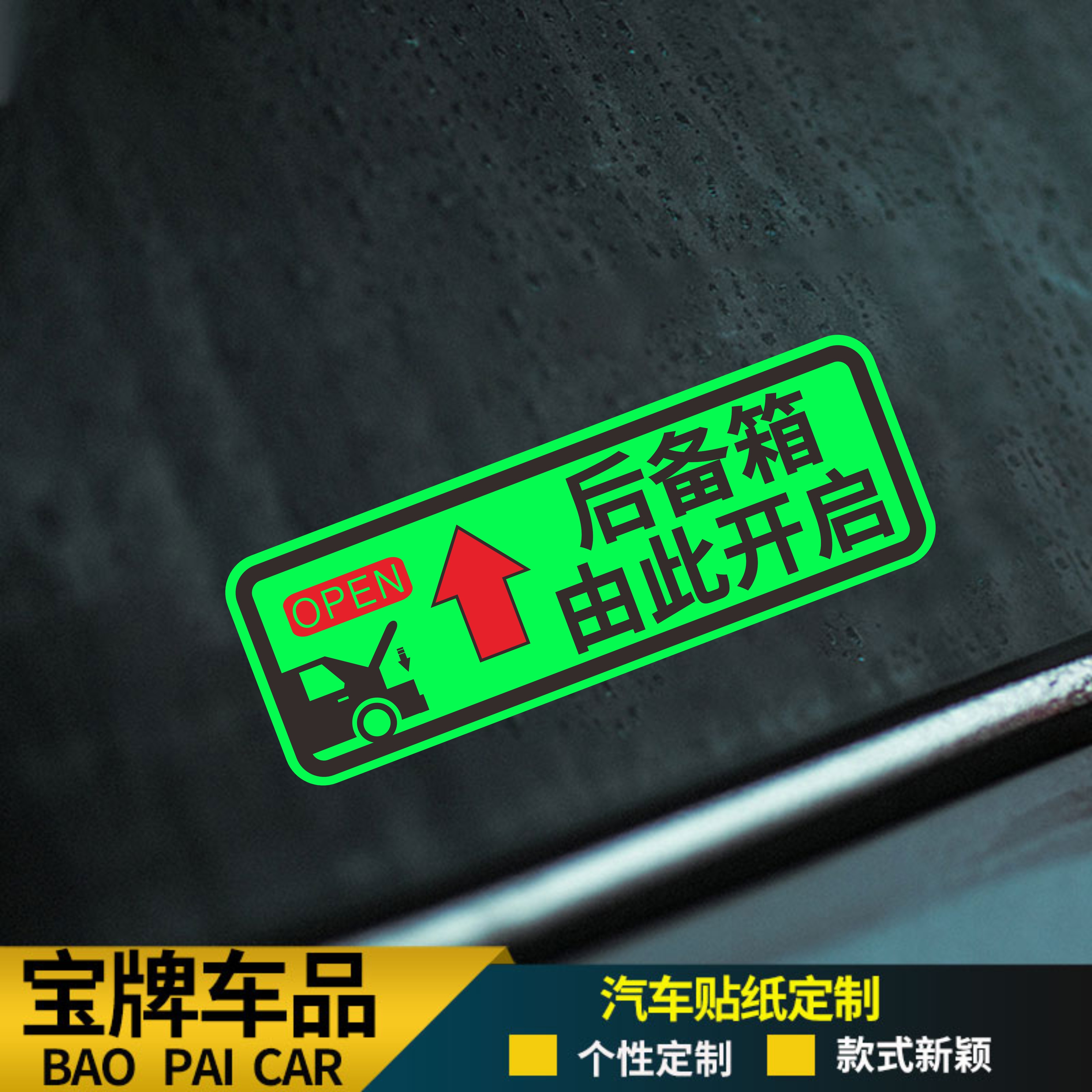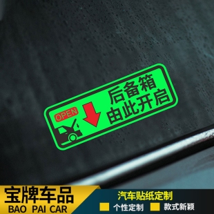 夜光后备箱由此开启提示贴车贴汽车自动电动尾门开关指示警示贴纸