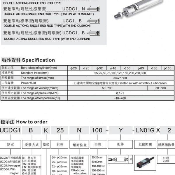 350 B325 375 400 450 UNIQUC优力克圆型气缸UCG1B 425 UCDG1B25N