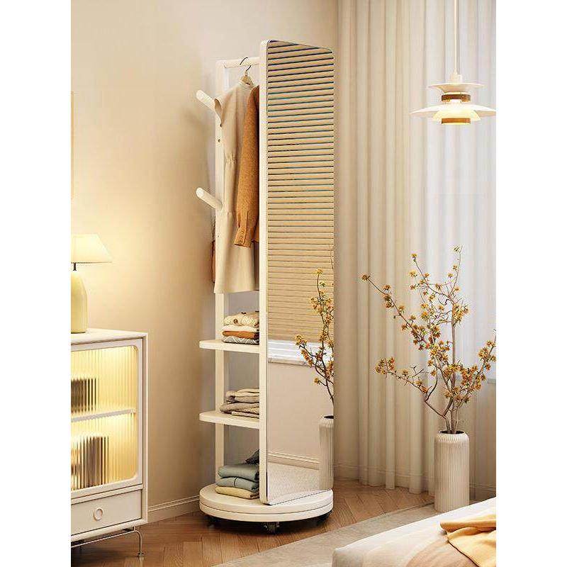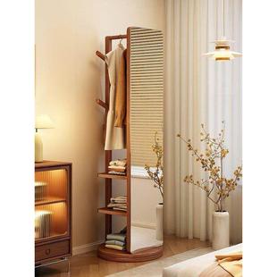 实木可移动旋转穿衣镜一体衣帽架家用落地全身镜挂衣架落地置物架