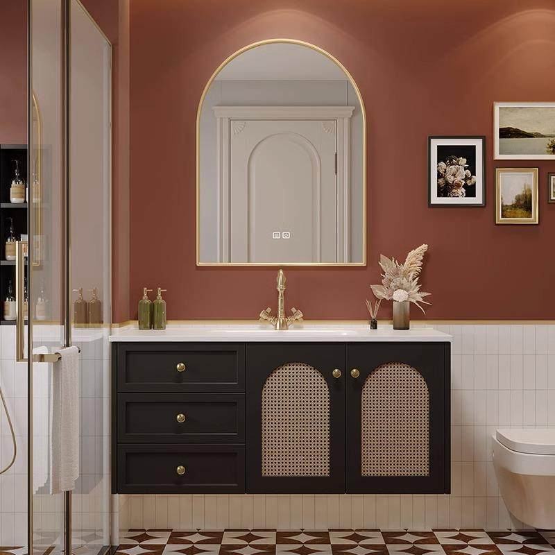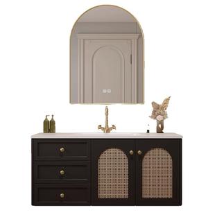 奶油风陶瓷一体盆浴室柜卫生间智能洗手台洗脸盆柜组合实木洗漱台
