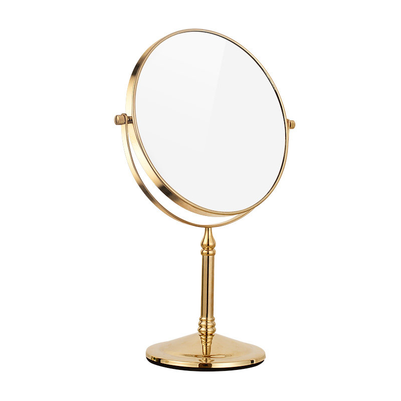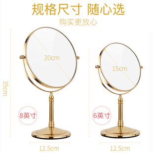 化妆镜台式 寝室宿舍双面镜子 桌面家用小型复古铜镜放大梳妆镜欧式