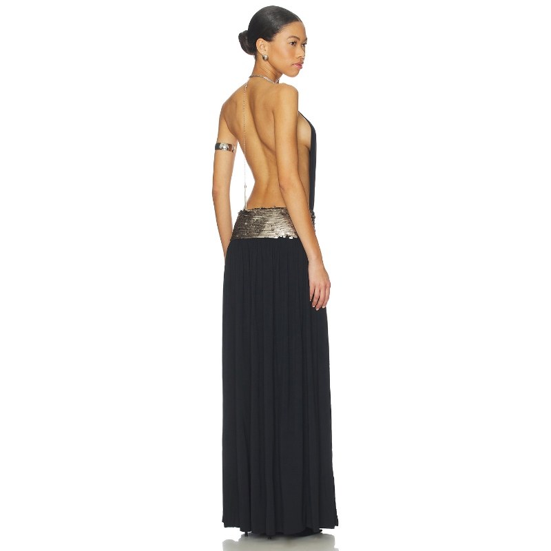 pusumede 黑色圆领拼接针织连衣裙女设计感花苞短裙 现货7.5折