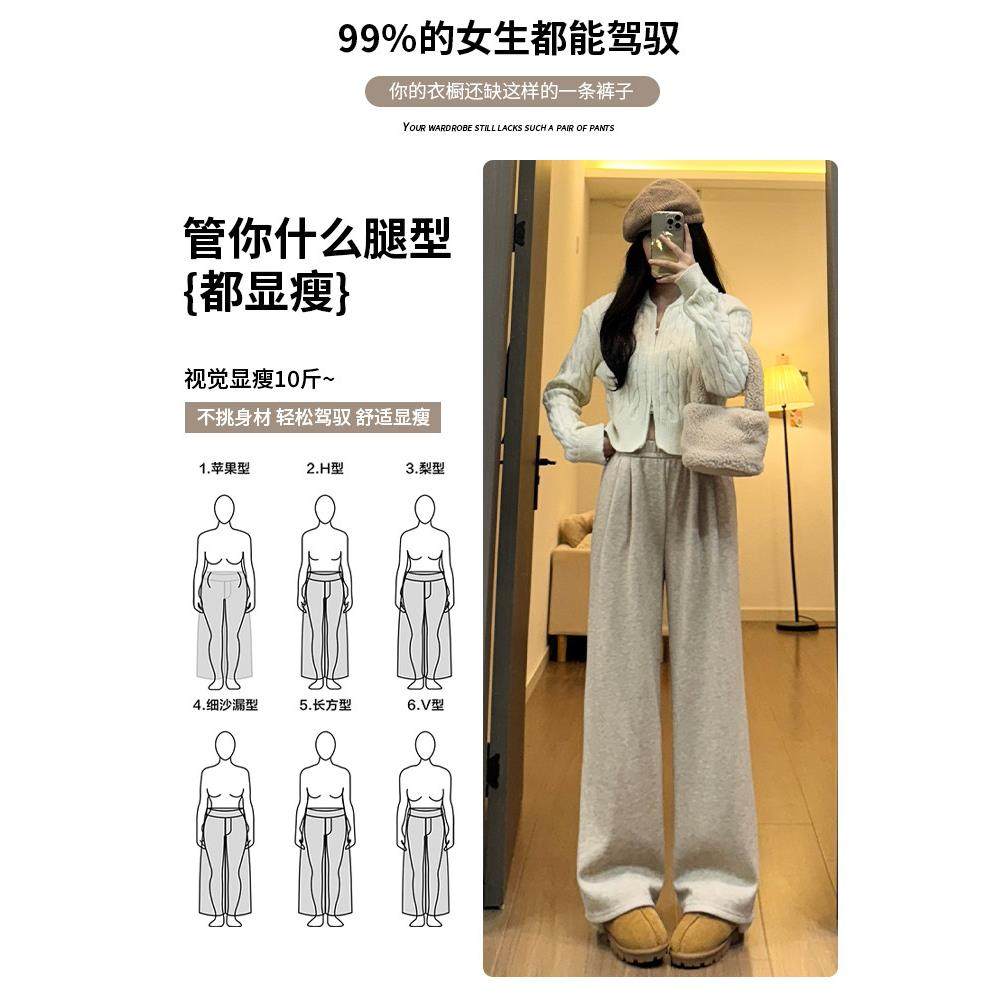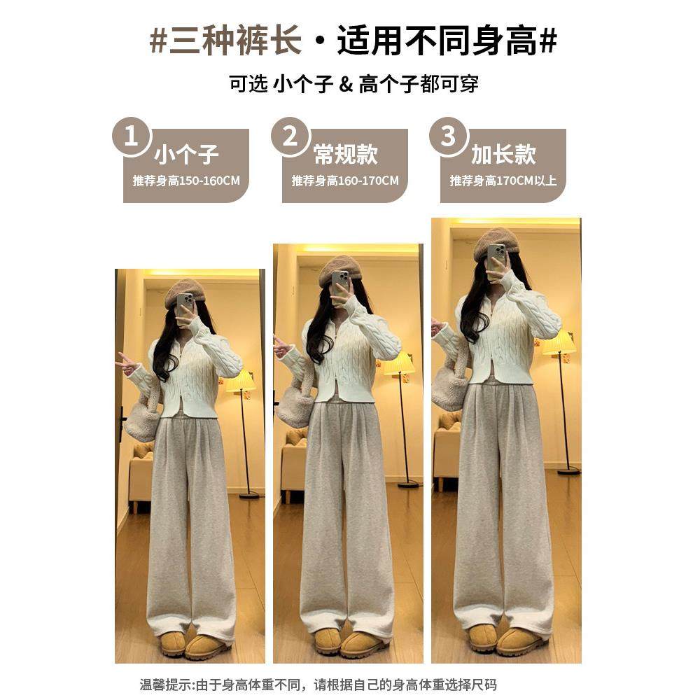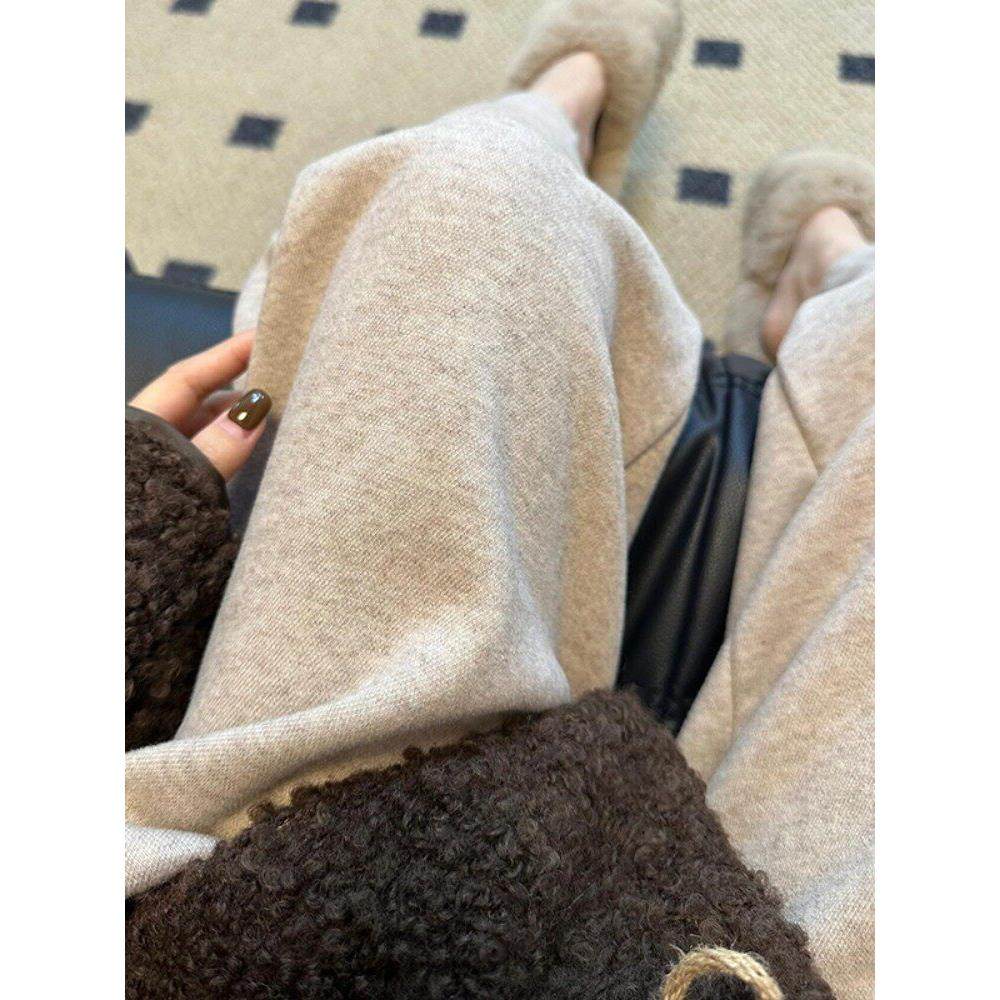 女加绒高腰直筒秋冬小个子糯米裤 Rouje Dsyle燕麦色山羊绒阔腿裤