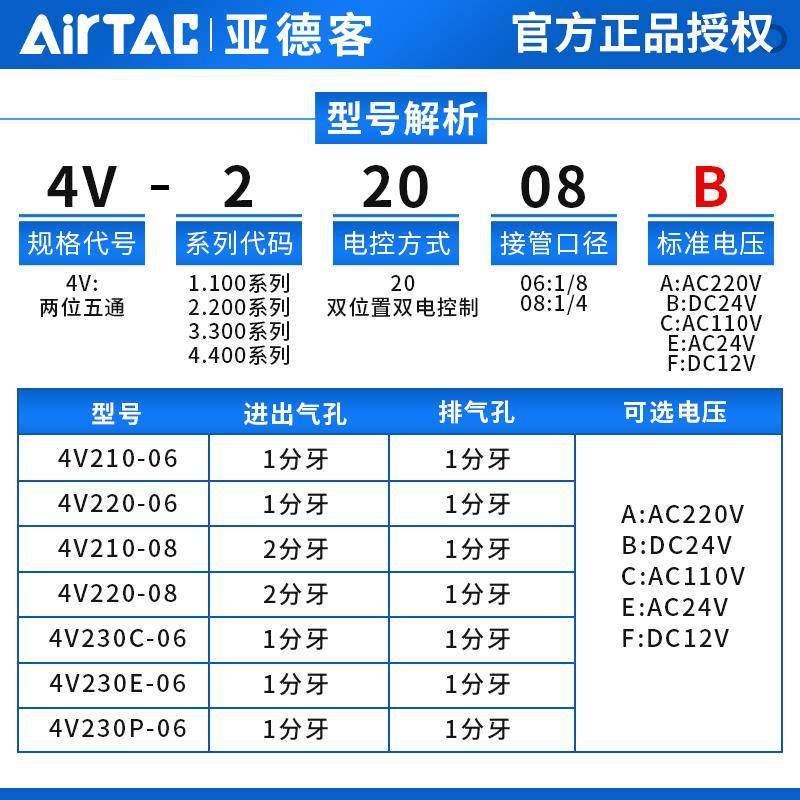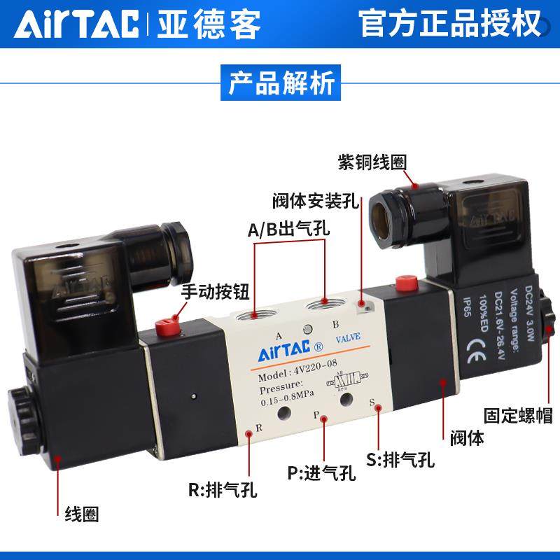 换向阀220V线圈控制阀24V电子气阀12V 亚德客气动电磁阀 4V210