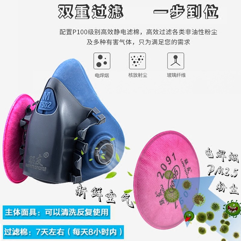 7502防尘面具工业粉尘打磨矿山煤矿专用透气防雾霾硅胶清洗面具夏