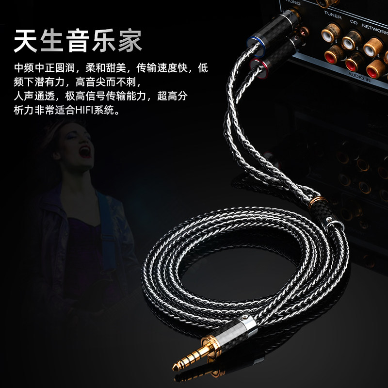 发烧级单晶铜镀银4.4平衡一分二音频线4.4mm转双莲花2rca
