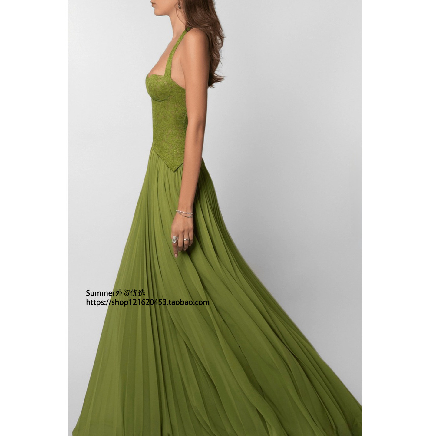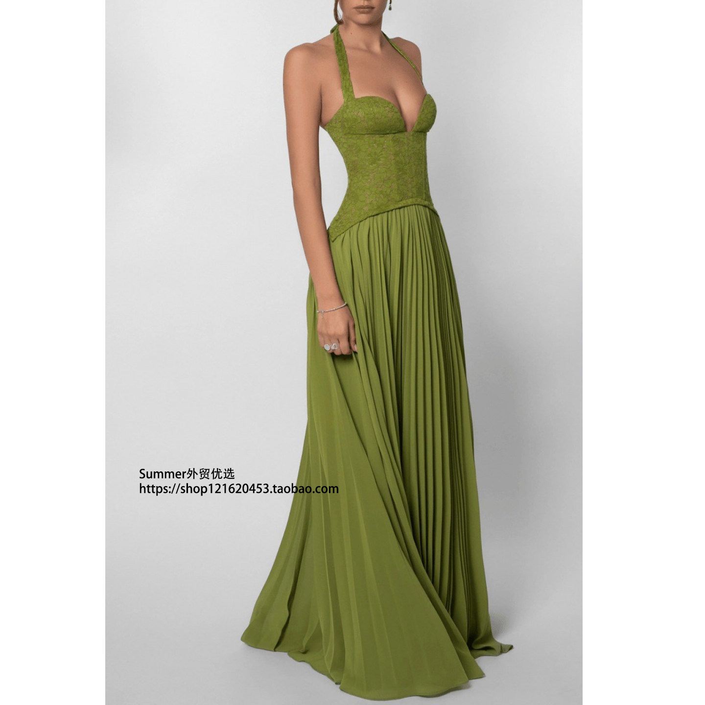 hanging neck dress 性感挂脖露背低领收腰褶皱吊带连衣裙Lace