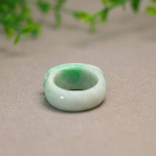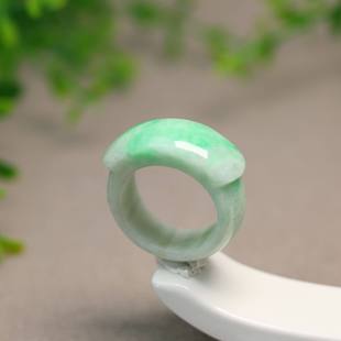 K365白底飘阳绿缅甸天然A货翡翠马鞍戒指23号圈口男戒