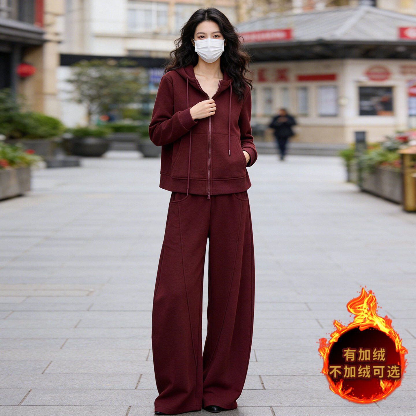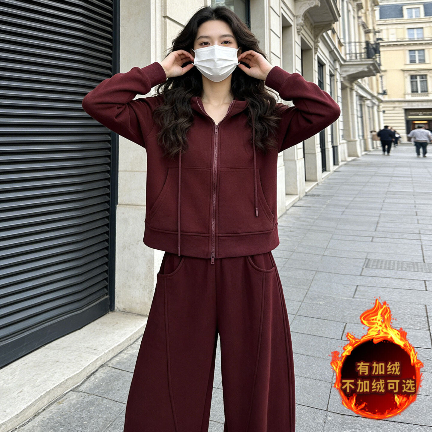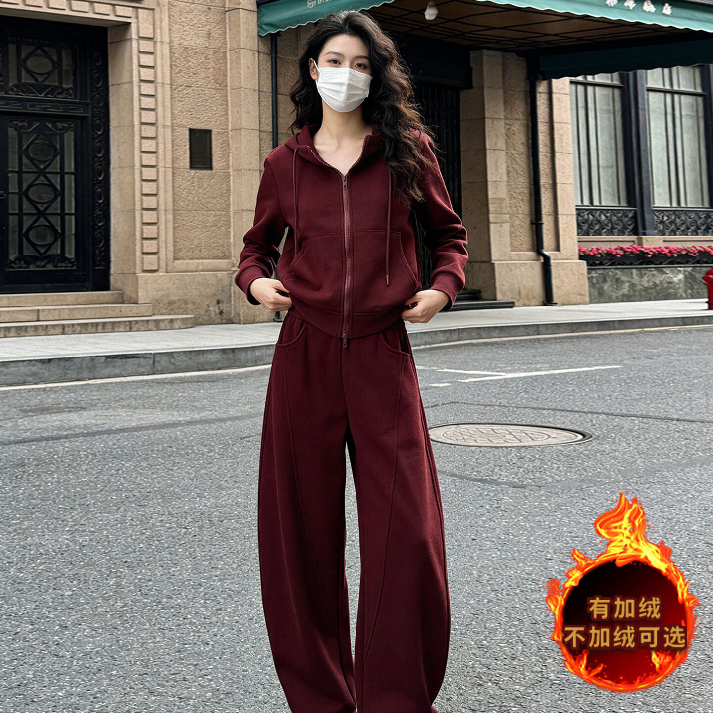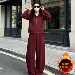 连帽卫衣直筒裤 拉链开衫 两件套潮 女秋冬新款 韩系气质简洁运动套装