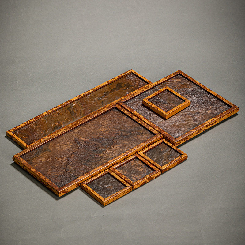 中式 斑竹茶盘托盘竹制大漆岩石干泡盘紫岩壶承竹杯垫单层小号茶具