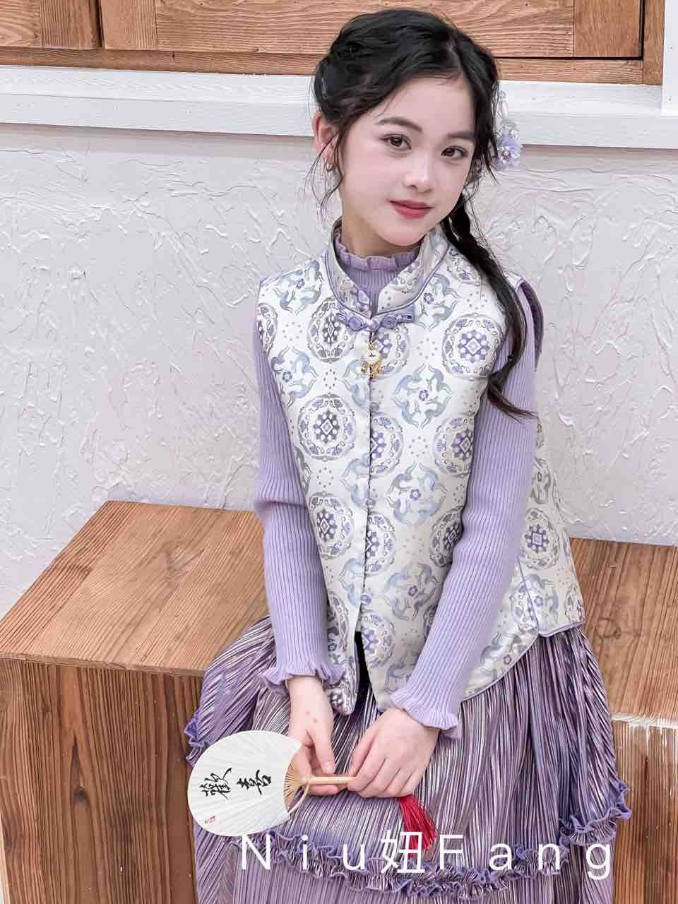 中国风拜年服三件套装 女孩古装 儿童马面裙唐装 女童汉服2025新款