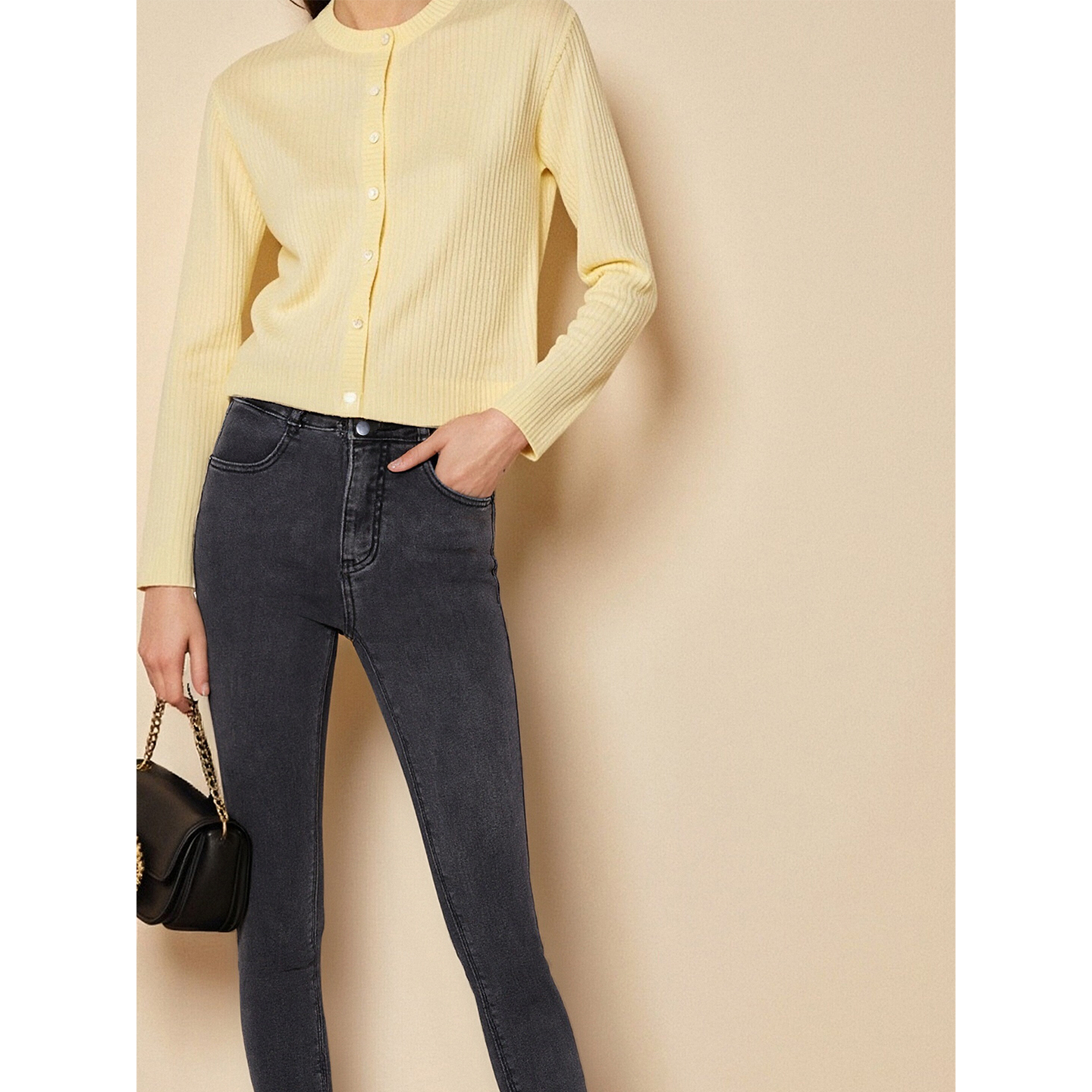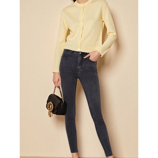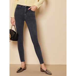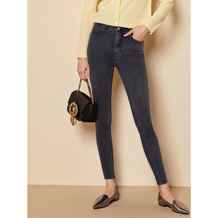 加绒加厚高腰紧身小脚裤 Basic 女冬季 百家好灰色九分牛仔裤 House
