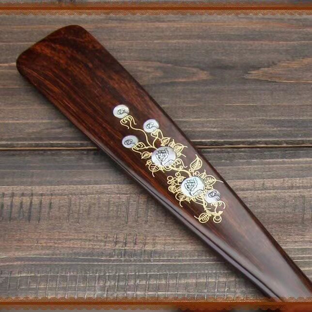 溜鸡翅木鞋 器家用鞋 拔子 拔黑檀木长柄镶嵌贝壳提鞋 越南实木鞋