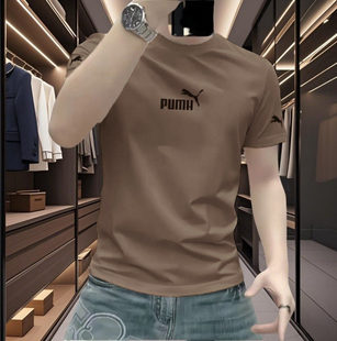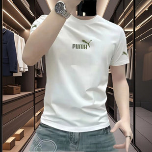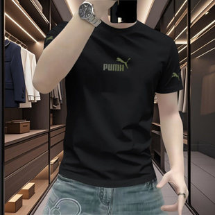 上衣纯棉半袖 印花纯棉百搭半袖 T恤男潮流修身 欧洲站红色短袖