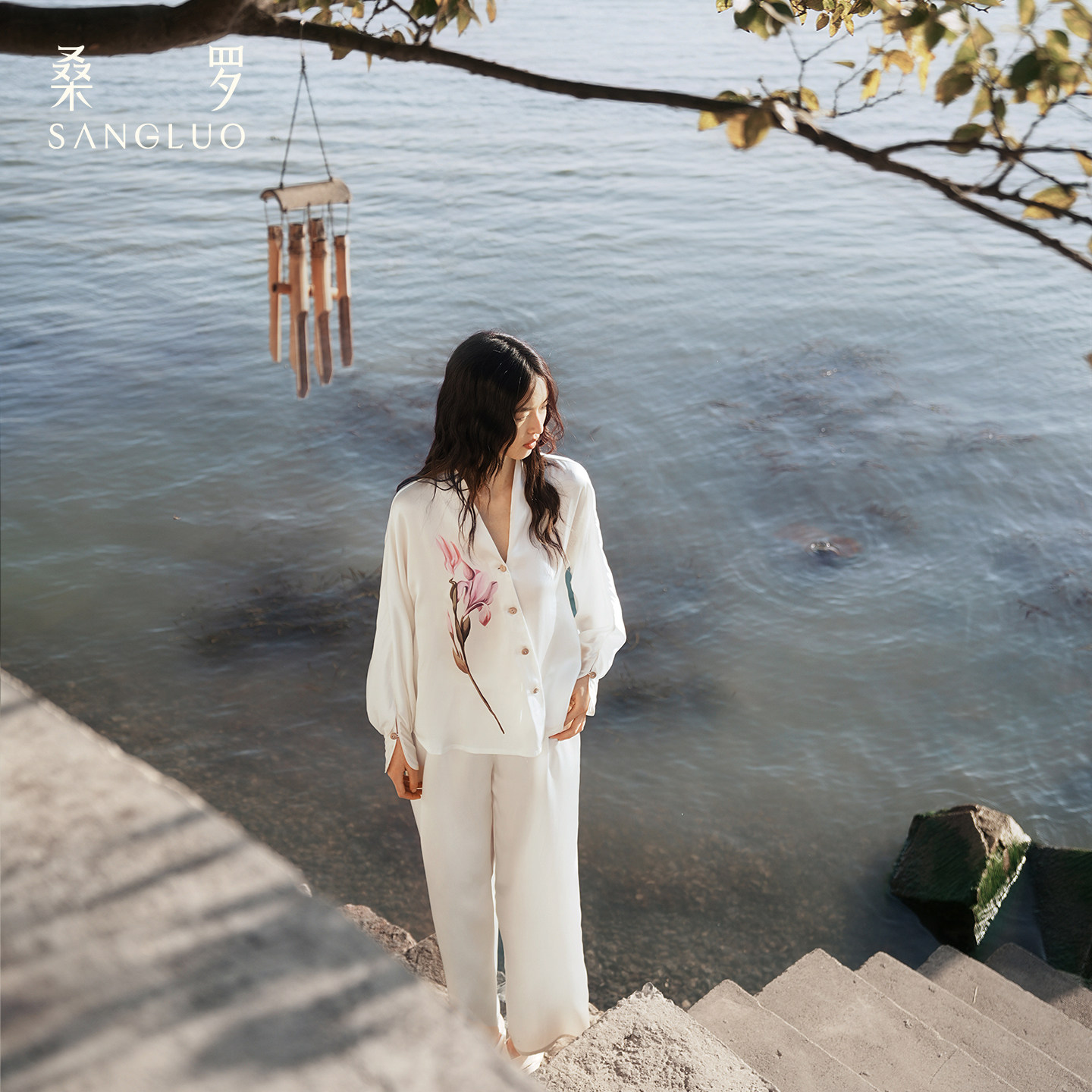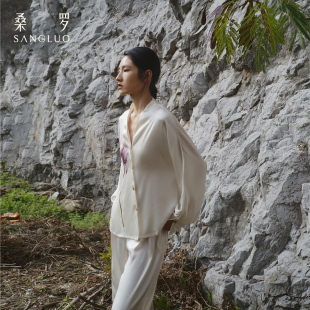套装 V领真丝睡衣女款 100%桑蚕丝家居服外穿 桑罗新中式 东方鸢尾