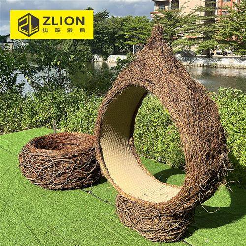 网红景区室外打卡拍照鸟巢酒店庭院民宿公园落地创意露天藤编鸟窝