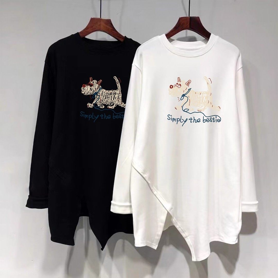 宽松显瘦上衣 T恤女不规则开叉中长款 超气质温柔 磨毛德绒长袖