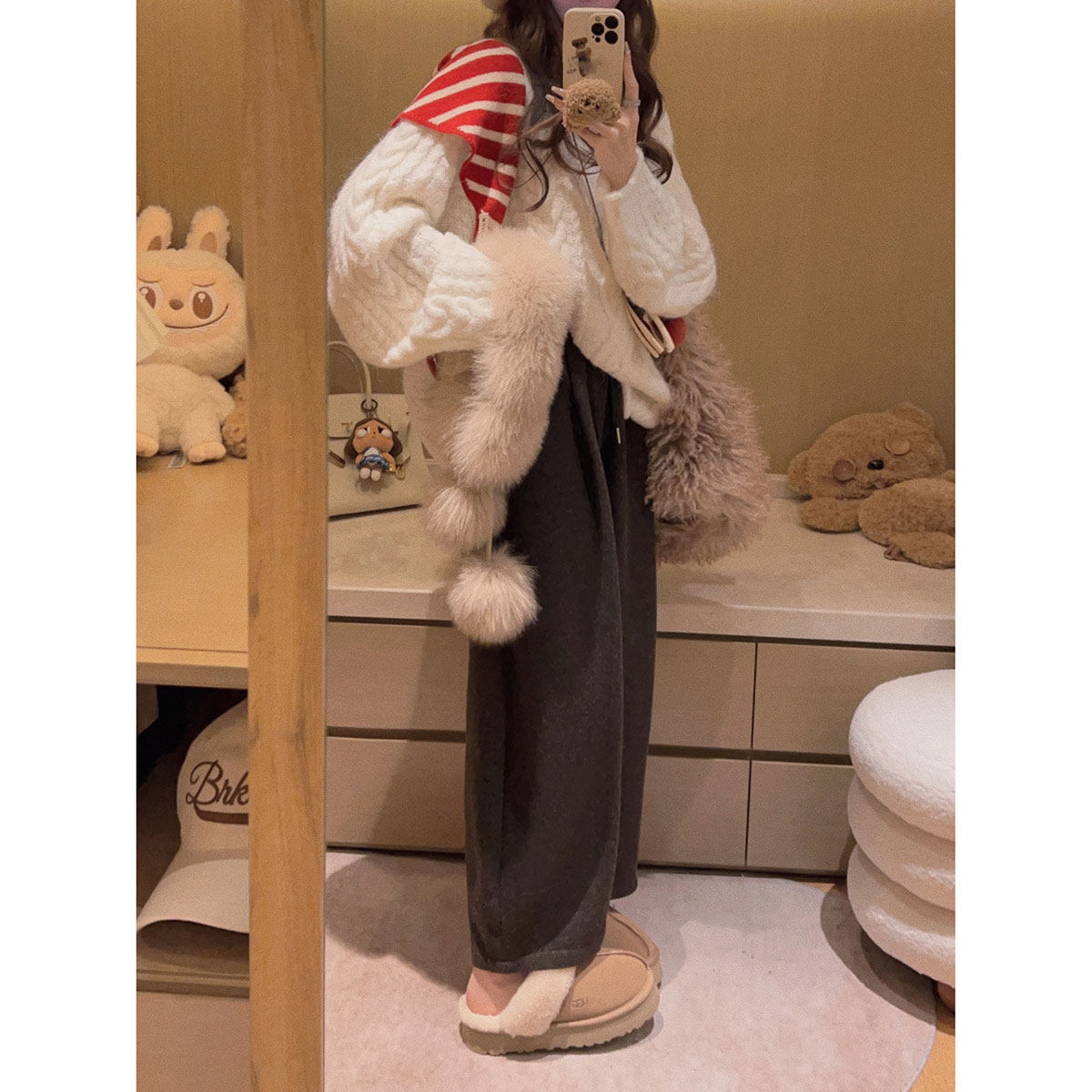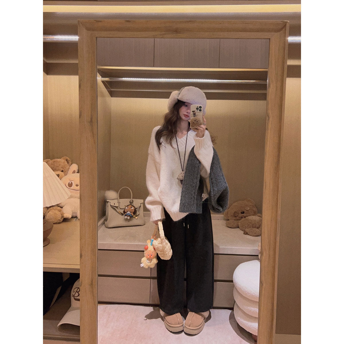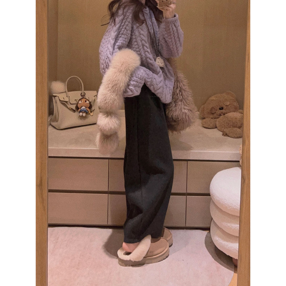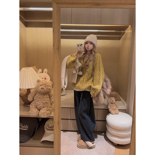 简约休闲慵懒风加绒加厚保暖阔腿裤 IEF 新款 子2025冬季 爱依服裤